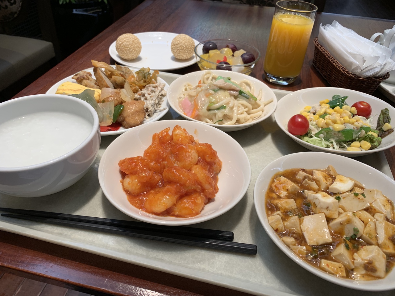 朝食は中華をはじめ、和食や洋食もあり、皿うどんやかまぼこなどの地元料理もあります。エビチリや麻婆豆腐は子どもがあまりいないせいか、わりと辛さもあっておいしかったです。帰りにはコーヒーの持ち帰りもありました。