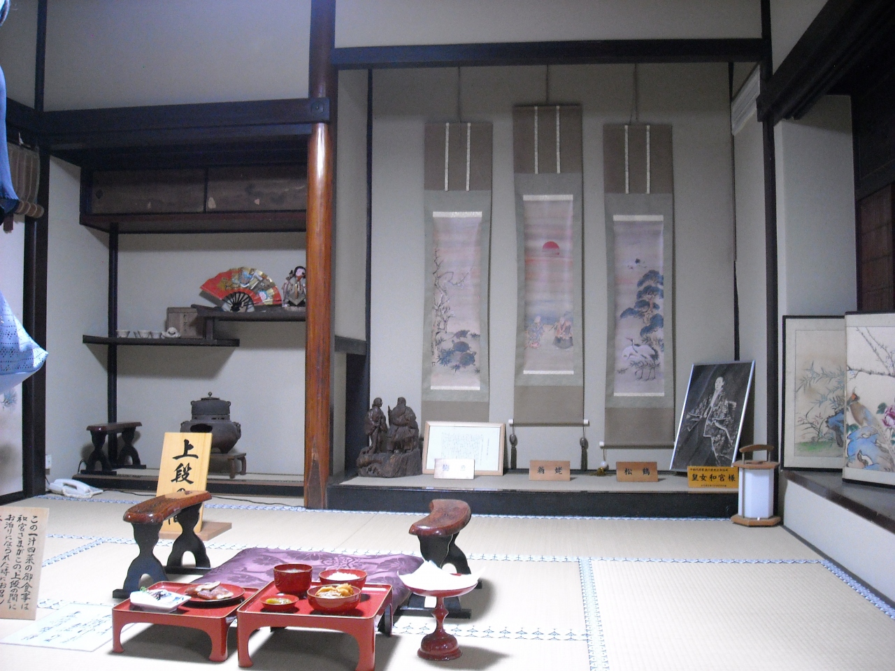 中山道・甲州街道合流する奥めいた所に有、その部屋を見学できることがわかり急遽訪問。僅か150年前の生活を肌で感じました。意外に質素でこじんまりとした3つ程の小部屋、庭といっても池や枯山水があるわけでもなく、鰻をことのほか喜ばれたありますが、3万人70kmの行列と大奥の権勢と全く結びつきませんでした。