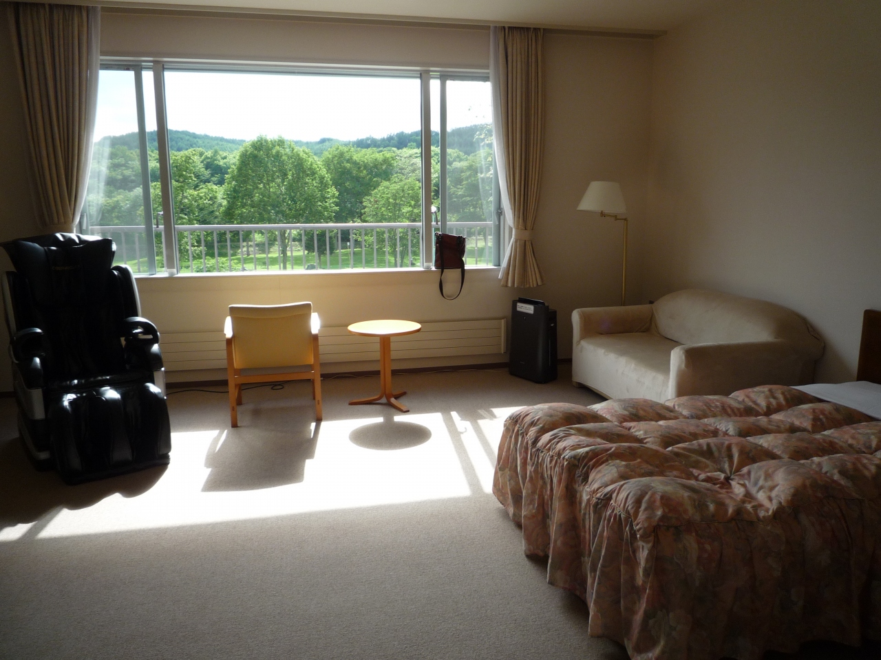 TVは50インチあり、空気清浄、マッサージチェアがあり、広々としていた。