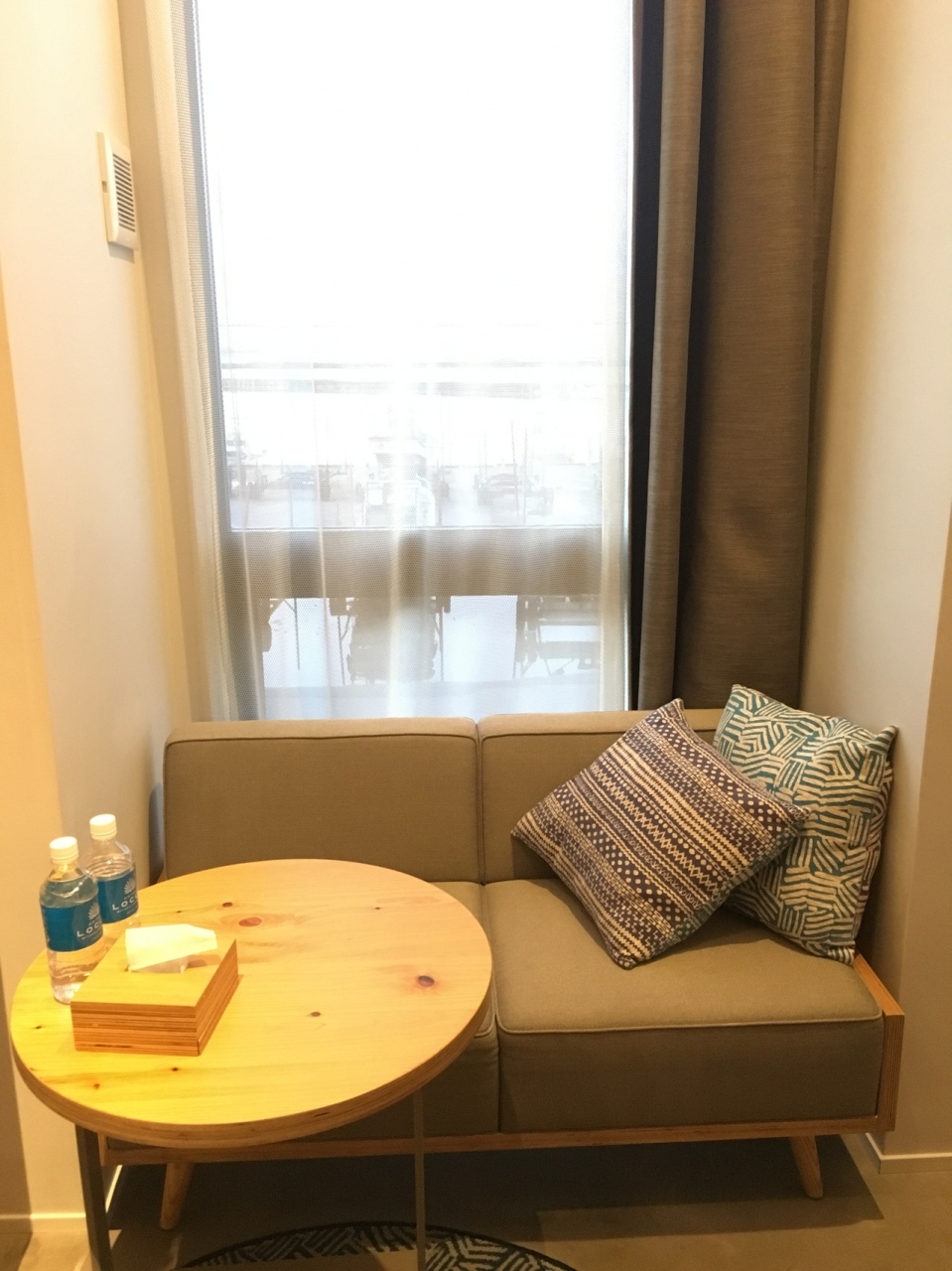 メゾネットダブルのお部屋に泊まりました。ソファがあるのでアクティビティーの後に休憩するのに便利でした。ベッドはロフトの上にあるのですが階段が少し急なので高い所が怖い方は注意が必要なのと、夜にトイレに行く時はロフトから降りるのが少し大変かなと思いました。近くにスーパーやご飯屋さんがないため街まで10分くらい歩きます。隣が少し歩くとビーチなので良かったです。