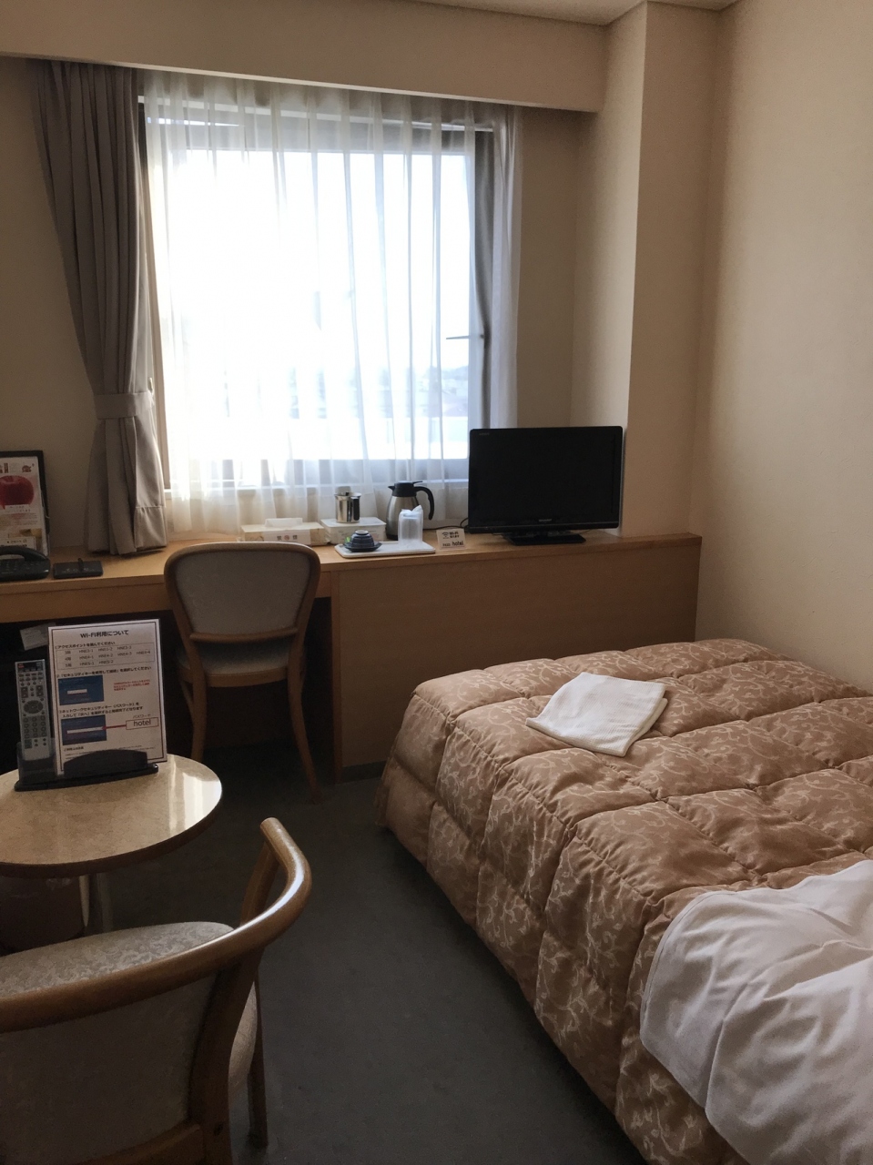 法事があったので2ヶ月前に予約しました。早割と日曜割引が適用になったのでしょうか、とても安く宿泊できました。シングルルームでしたが、やや狭くて水回りも古いです。地元の人に聞きましたが、1階のレストランは開店休業状態だそうです。ホテル内で夕食を考えている方は、予約時に確認した方がよさそうです。