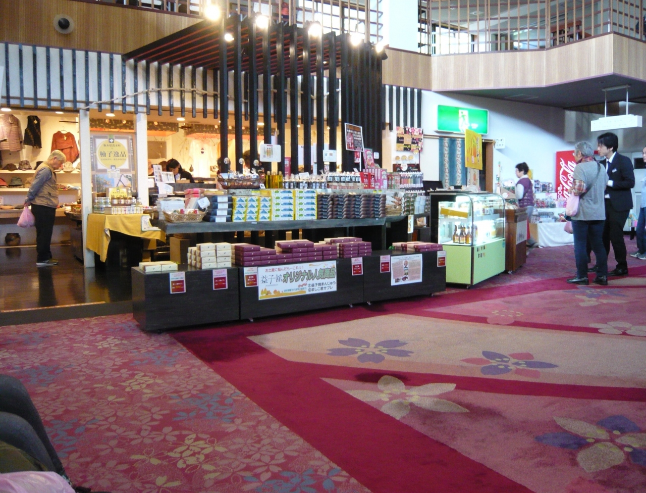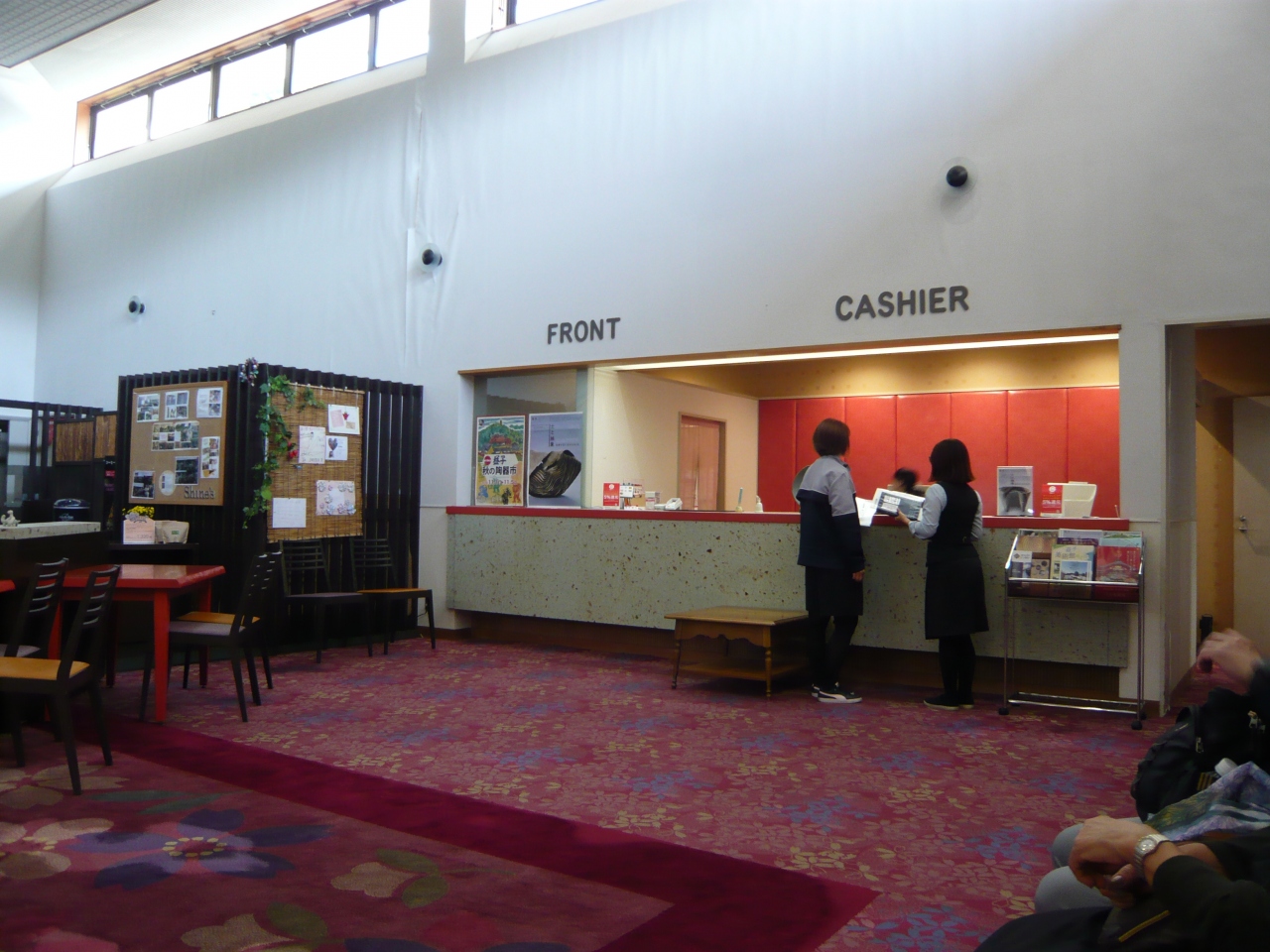 館内には売店もあり、地域の土産物品やホテルオリジナルのお饅頭なども販売されているのですが、売店ではクレジットカードが使用できないとのことで、現金のみの利用でした。