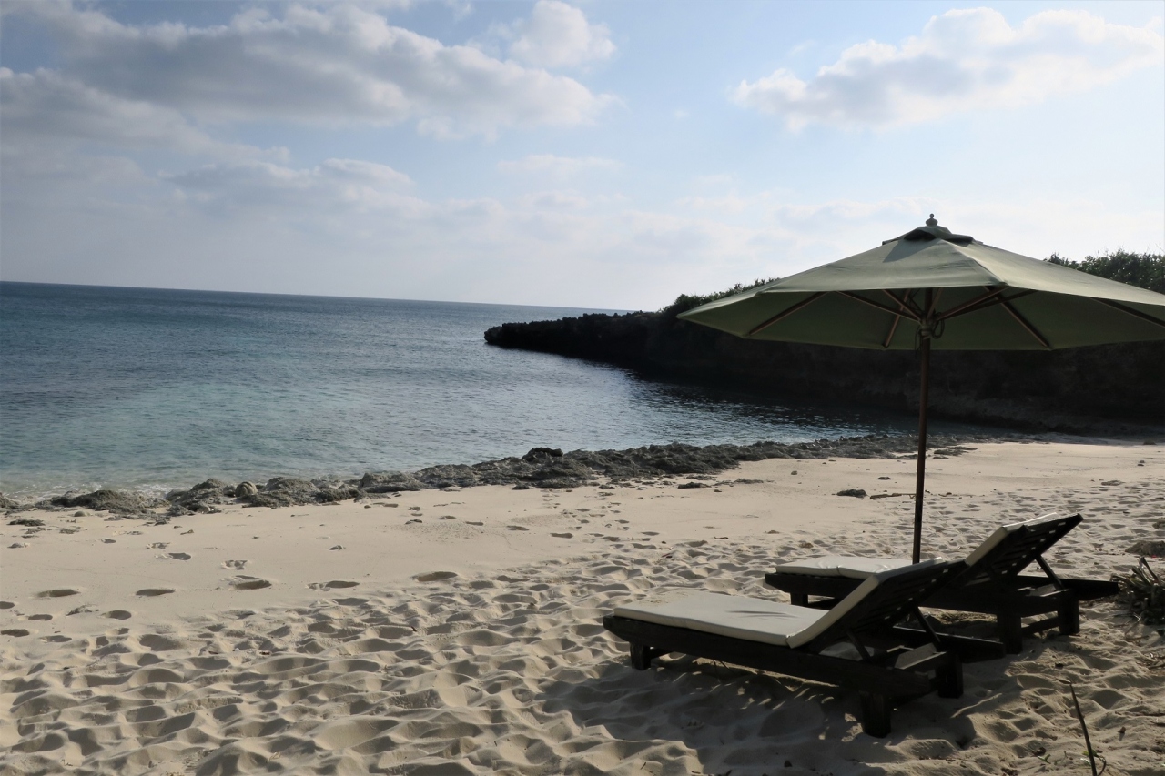 この宿で気に入ったのはプライベートビーチ。わずか6部屋の施設のプライベートビーチとあって、混み合うことはないですね。また、海の中はカラフルな熱帯魚や珊瑚が見られました。あいにく、波が荒く、うねりがあって、存分には楽しめませんでした。これは、また来たいな。シュノーケルセットは有料で貸し出ししています。