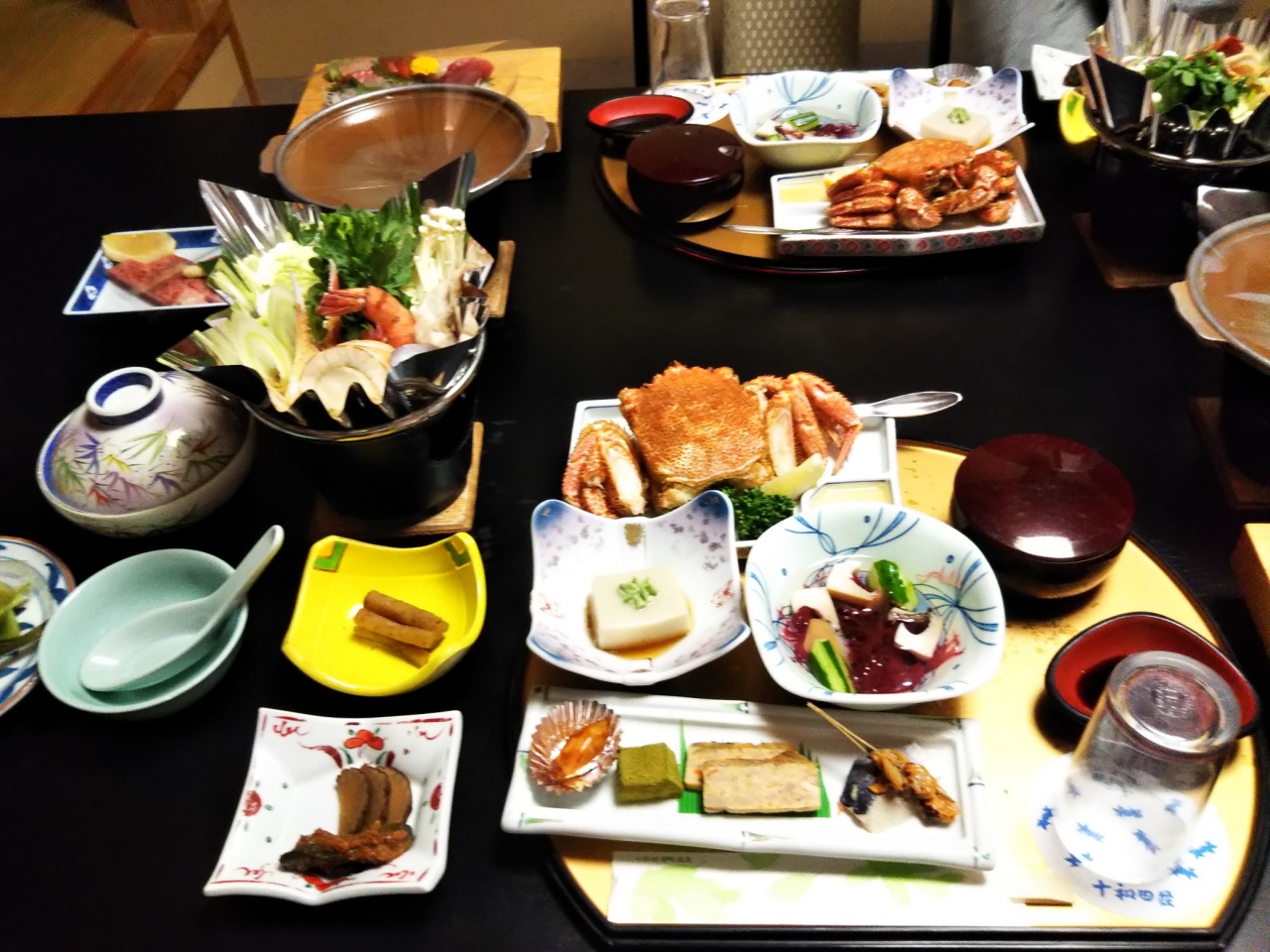 十和田湖畔休屋の入口に佇む十和田荘は,秋の紅葉シーズンに宿泊するには最高のロケーションです。目の前の十和田湖や車で15分ほどで奥入瀬渓谷にも行けます。宿自体は古いのですが、ホテルは広く滝が流れる泉の広場や大浴場など散策しても飽きません。この日も大型バス4台で中国人の観光客が大勢宿泊していました。部屋は和洋室でゆっくり過ごせました。夕食はとろける美味しさA5ランクの十和田湖和牛の陶板焼きと、毛蟹まるごと1パイの豪華会席料理でおなか一杯になりました。春の新緑,秋の紅葉とオールシーズン楽しめる宿だと思います。