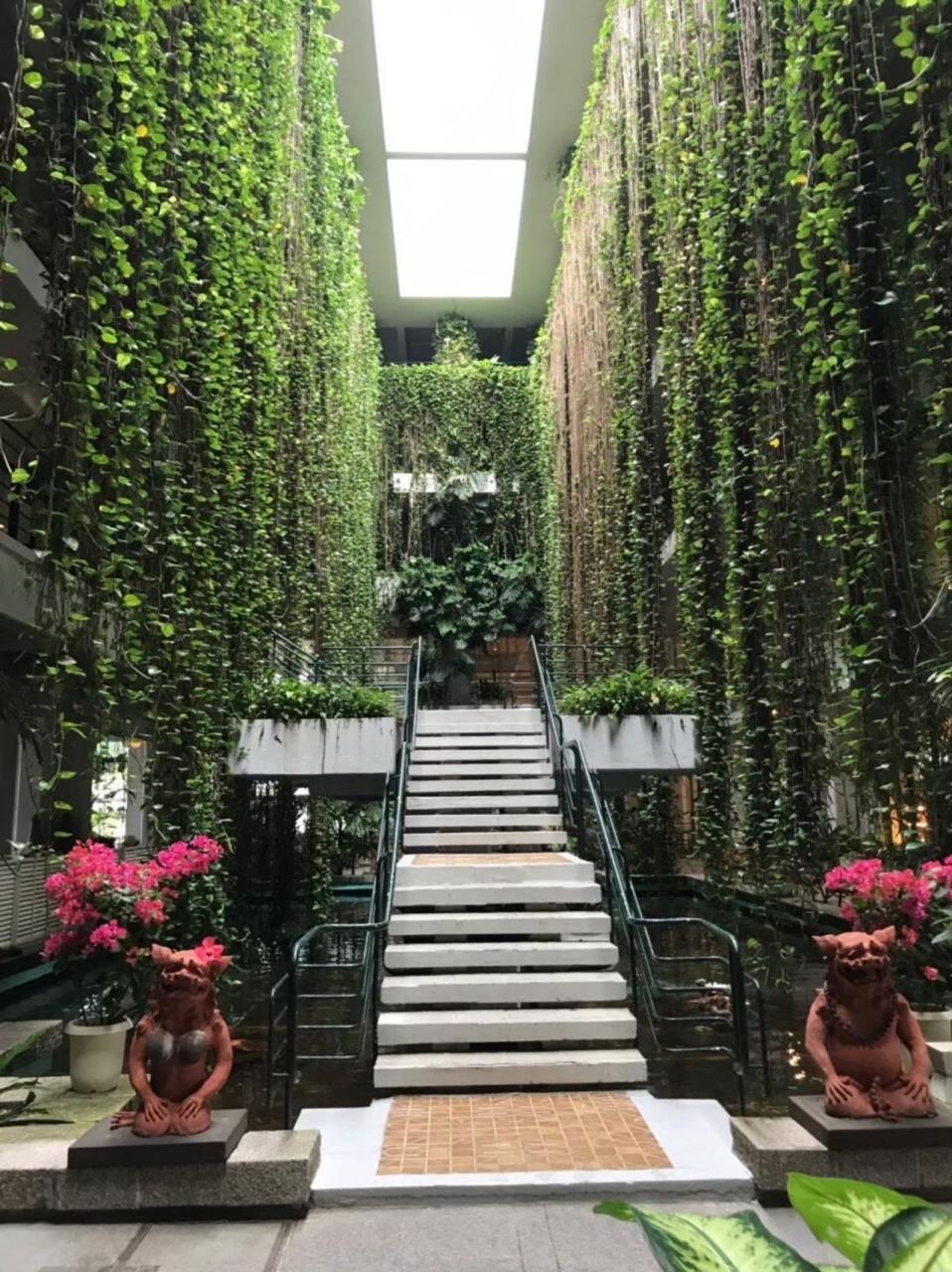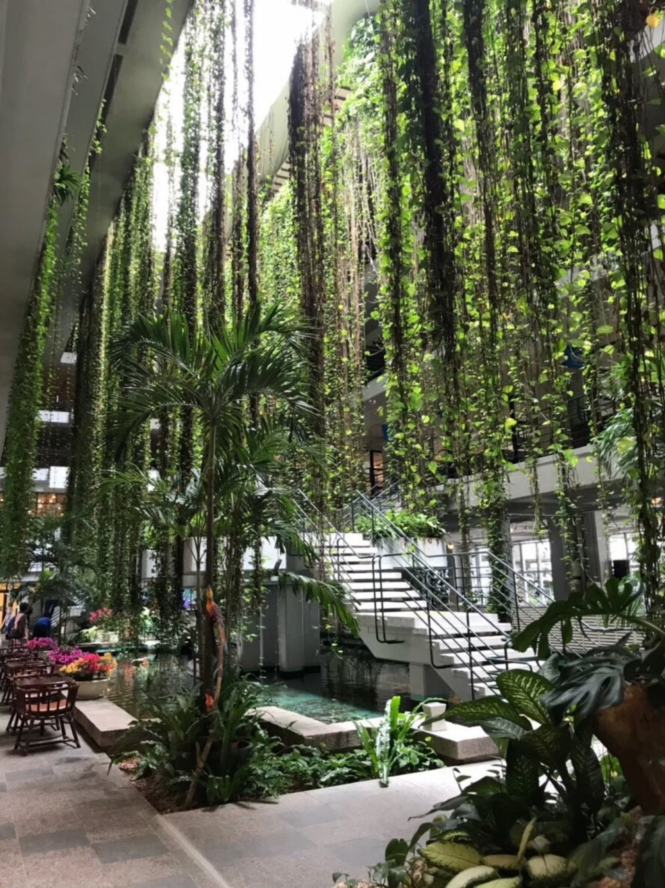 設備は少々古いですが、吹き抜けやオープンエアのレストランなど、とても開放的な雰囲気でレトロで素敵です。