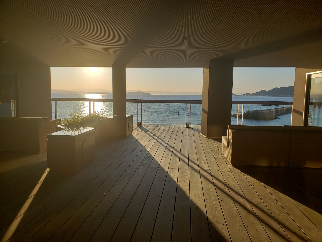 部屋からの景色は最高だけど、翌日朝食から帰って来たらそこは温室状態。日の出には感激したけど、チェックアウトまではテラスに避難。