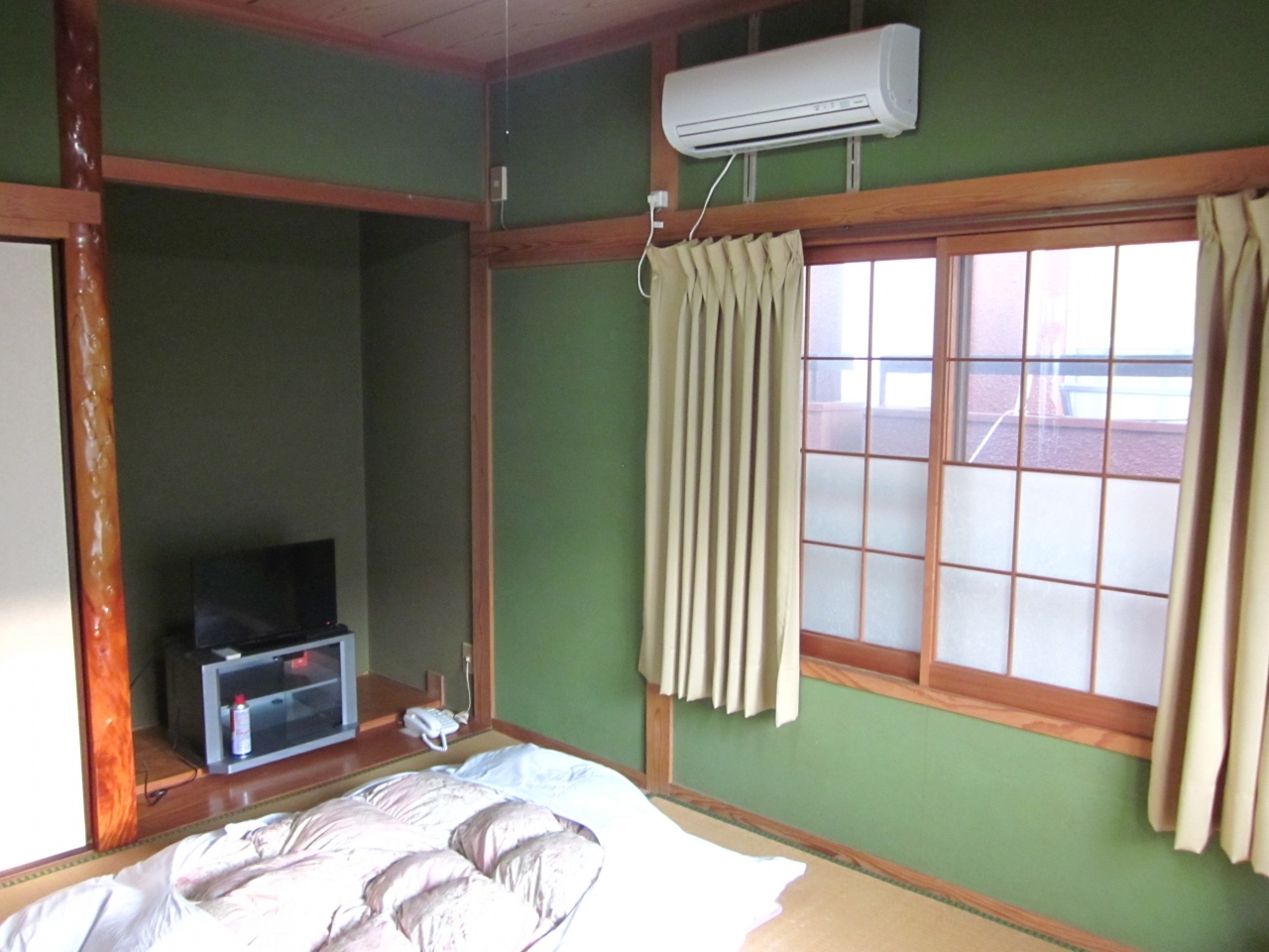 観るからに昭和の木賃宿の雰囲気を色濃く残す小さな安温泉宿…、敢えて今回はその風情を楽しみに来たのですが~、なのに案内されたのは別館といって母屋の2階?…、これならただの下宿と同じ~、6畳一間です…。