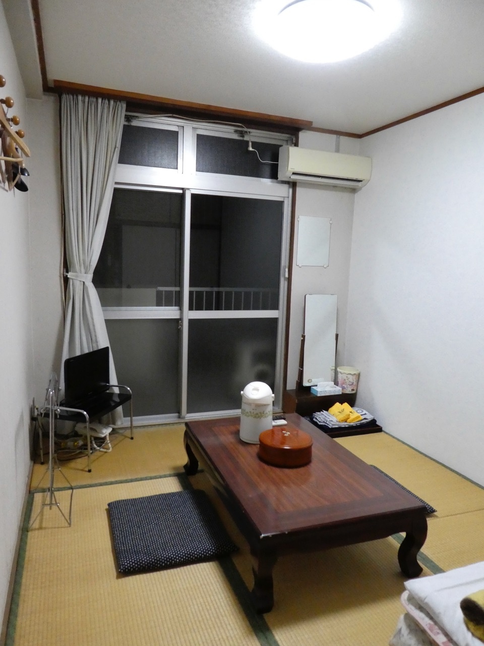 前回1人で泊まって温泉の感じ、レトロな建物と部屋、トイレも洗面も共同、共同炊事場などその素朴な良さを妻に語ったところ、一緒に行きたいと言われ、今度は夫婦で訪問。前回はお安い旧館の宿泊でしたが今回は新館の宿泊です。違いは新旧以外に冷暖房の有無と浴衣の有無。冬は旧館でもこたつがあったので特に問題ないですが、夏は新館の方が快適でしょう。