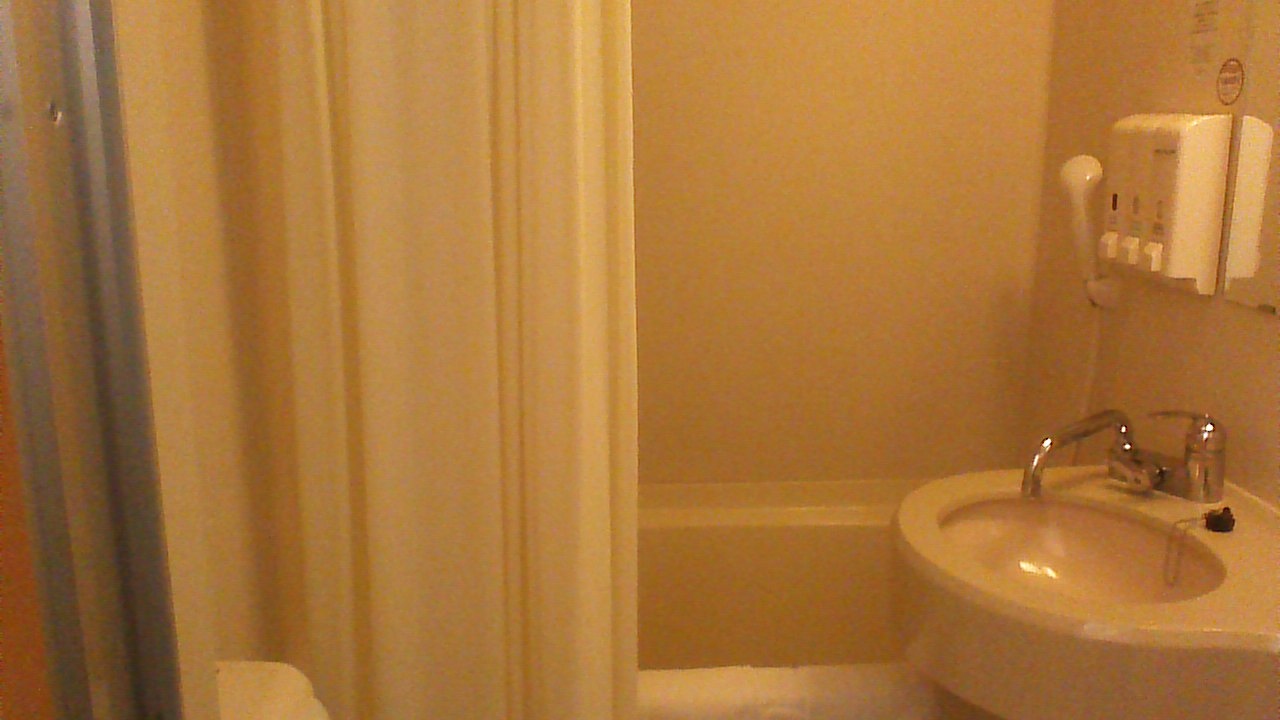 シャワーカーテンが垂直ではなく、斜め上から降りているので、シャワーを浴びる時に空間が広くなるので良かった。
