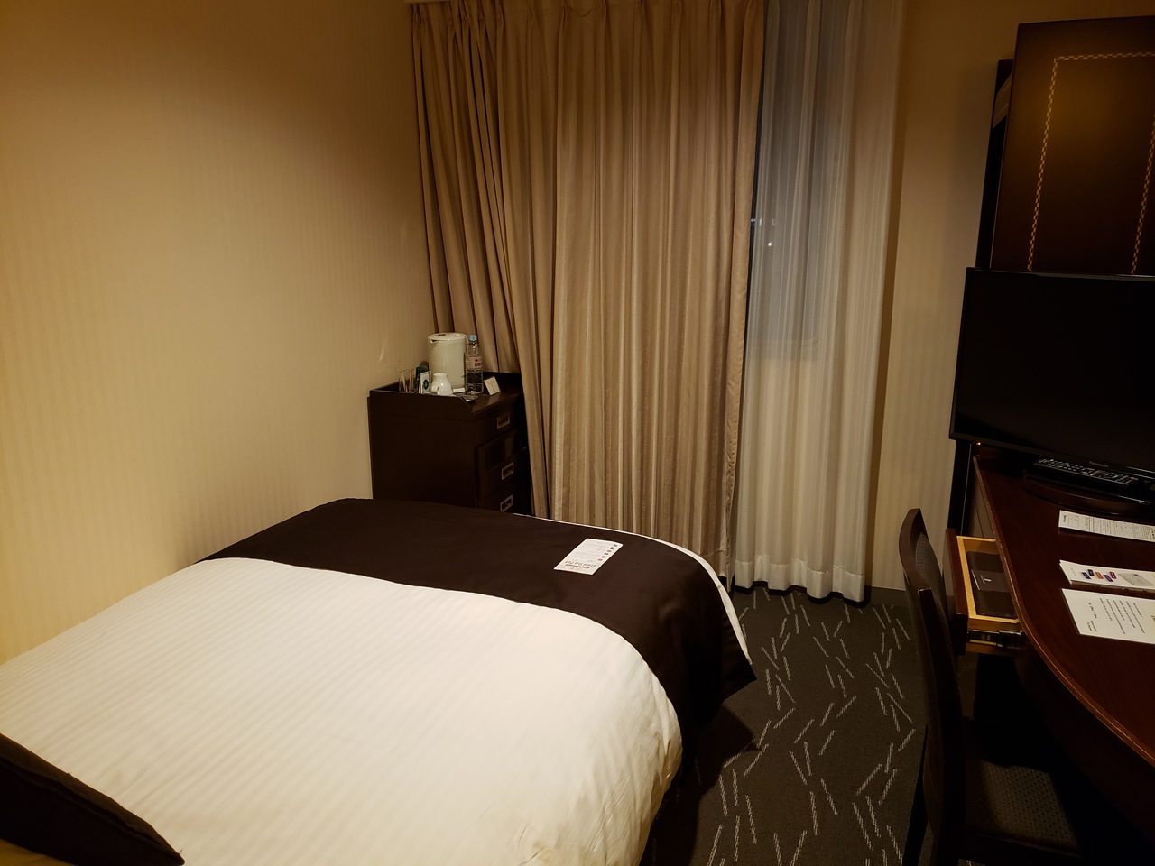 繁華街天神にあるので、どこに行くにも便利なホテルです。部屋のインテリアも落ち着きあるデザインで、ゆっくりと寛げます。シングルの部屋は、コンパクトながら必要なものはすべて揃っているので、ビジネスでも不足を感じません。