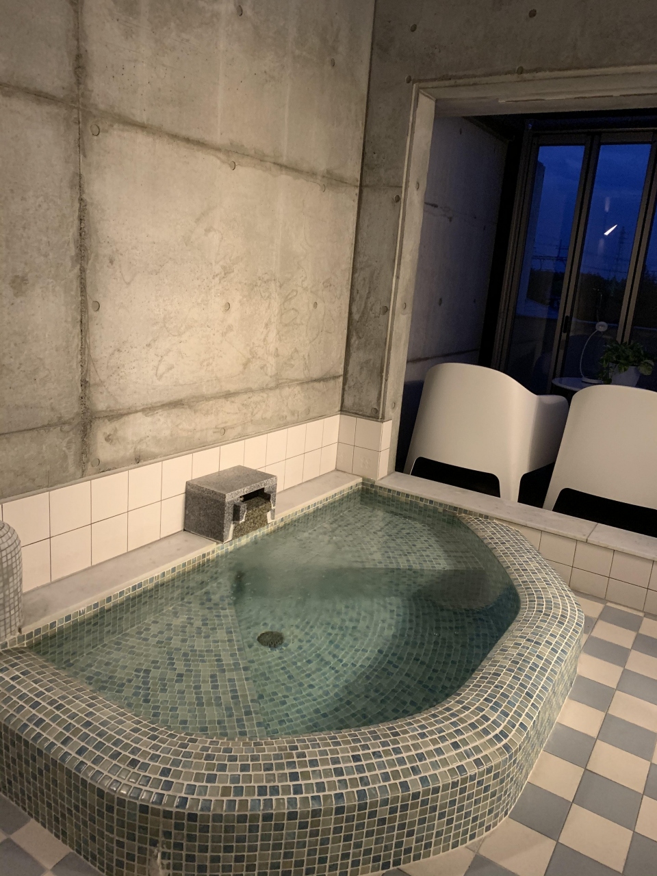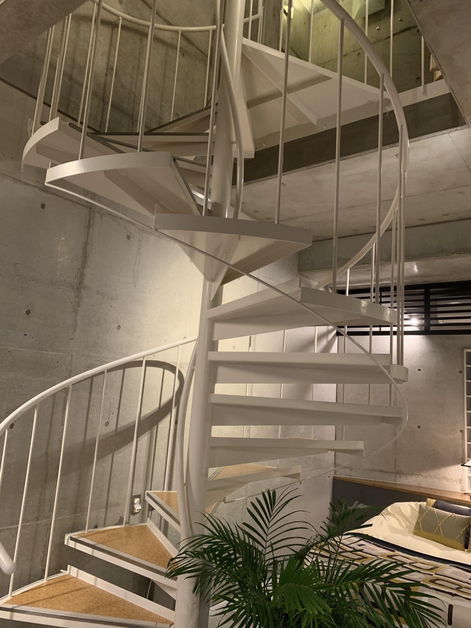 螺旋状の階段を上がると2階にバルコニーと展望風呂がありました。