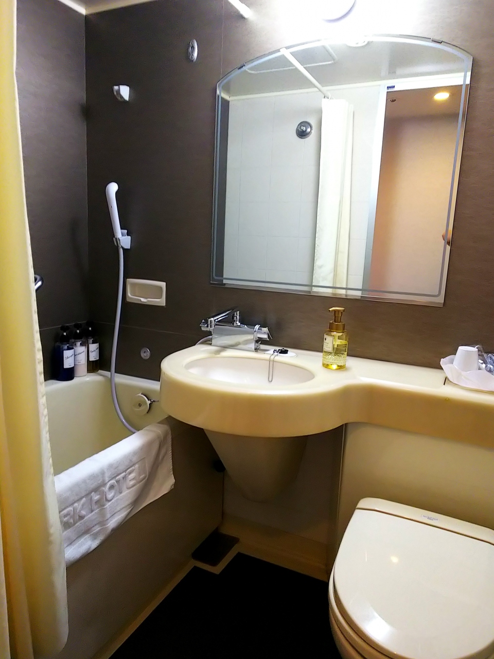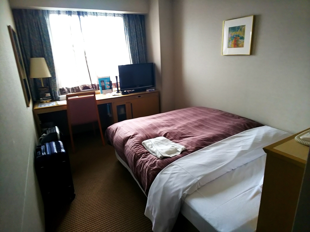 ルートイングループのホテルです。到着したのはまだ2時過ぎたところでしたが、チェックイン可能とのことでお部屋に入れました。ベットカバーや備品類はルートイン仕様。残念なのは、大浴場がないことと朝食も無料じゃない?(朝食バイキング¥1300のポスター エレベーター内にあり)ようです。朝ごはんは、4日間とも出張パックに付いていたので良かったのですが、やっぱりお風呂が…(^_^;) まぁ、仕事で滞在するので文句言えませんけどね。朝食メニューはほぼルートインと同じで、ご当地名物(明太子やモツ鍋など)がいくつか追加されてるって感じでした。