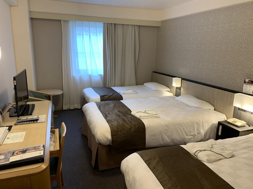 大街道駅の目の前、伊予銀が目印のホテルです。駅から1分もあればロビーにたどり着ける好立地。お部屋はごくごく普通なビジネスホテル。少々狭いかも。必要なものは一通りそろっているので特に困ることはありませんでした。お部屋に人数分のミネラルウォーターが置いてあるのは○。朝食もこれっと言って目玉もなくごくごく普通。全体的に「普通」といった印象のホテルでした。