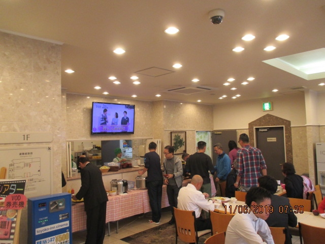 料金から想像して、普通のビジネスホテルのつもりで行くと、いささかびっくりです。和食と洋食が選べるのはまだしも、白いご飯のほかに炊き込みご飯も選べて、名物せんべい汁まで味わうことができました。朝7時過ぎには、食堂前には行列ができていました。