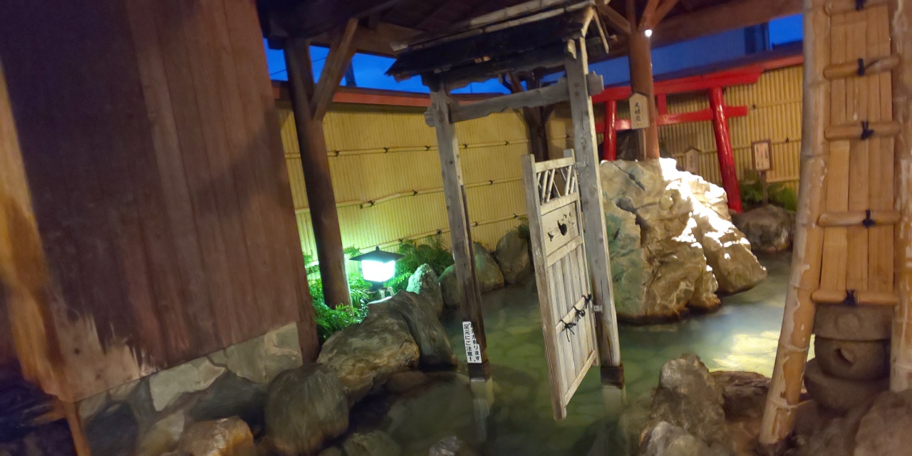 お風呂は鳥居や夫婦岩など趣向をこらしていて、なかなか面白い。