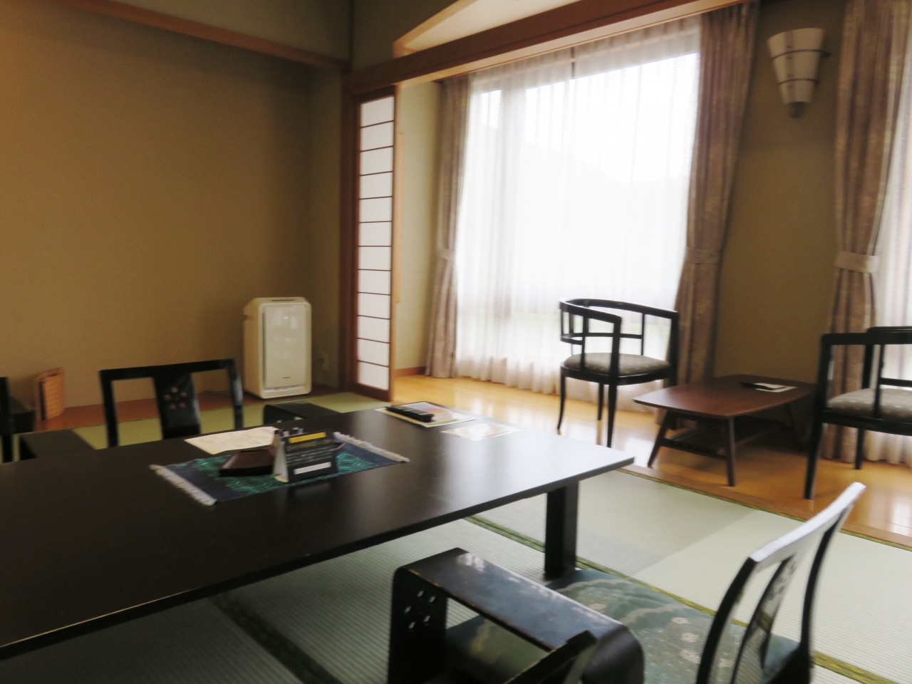中に入ると豪華なシャンデリアがお出迎え。部屋は和室と洋室があります。