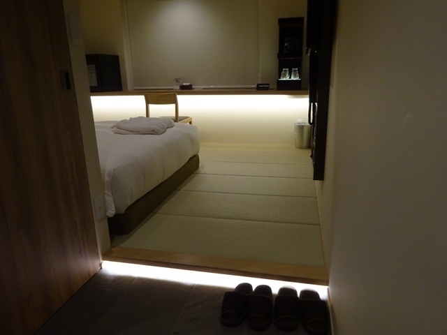 お部屋は期待通り!やはり靴を脱いで畳というのは落ち着きます。畳に椅子スタイルなので、膝も楽。お部屋に依ってはカーペットなので平米数をホテル公式サイトと見比べながら予約しました。他にも、バスタブなしの部屋などタイプがマチマチなので、予約時に注意が必要かと思います(別途、地下に大浴場はあります)