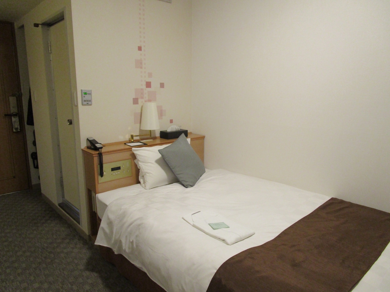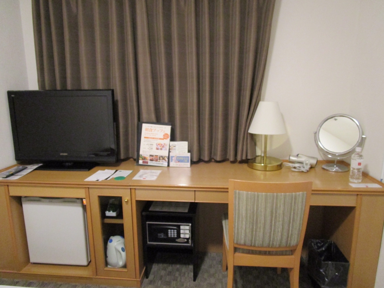 シングルルームにセミダブルベッド、デスクやテレビなど使いやすいビジネスホテルでした。