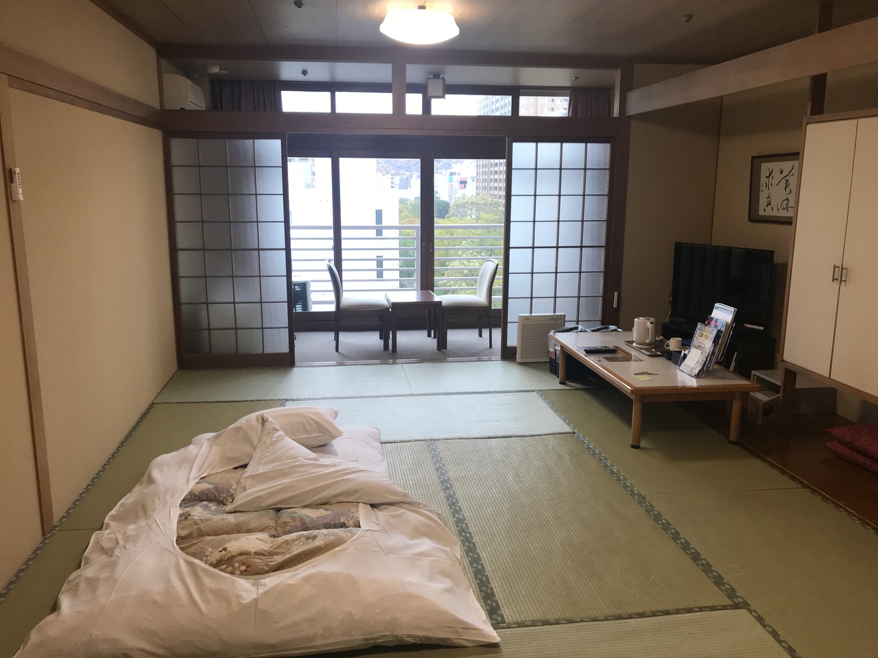ANA楽パックの部屋お任せプランで2泊しました。予約時点でほぼ満室状態だったため、部屋は期待していませんでしたが、シングルユースで12畳和室でした。