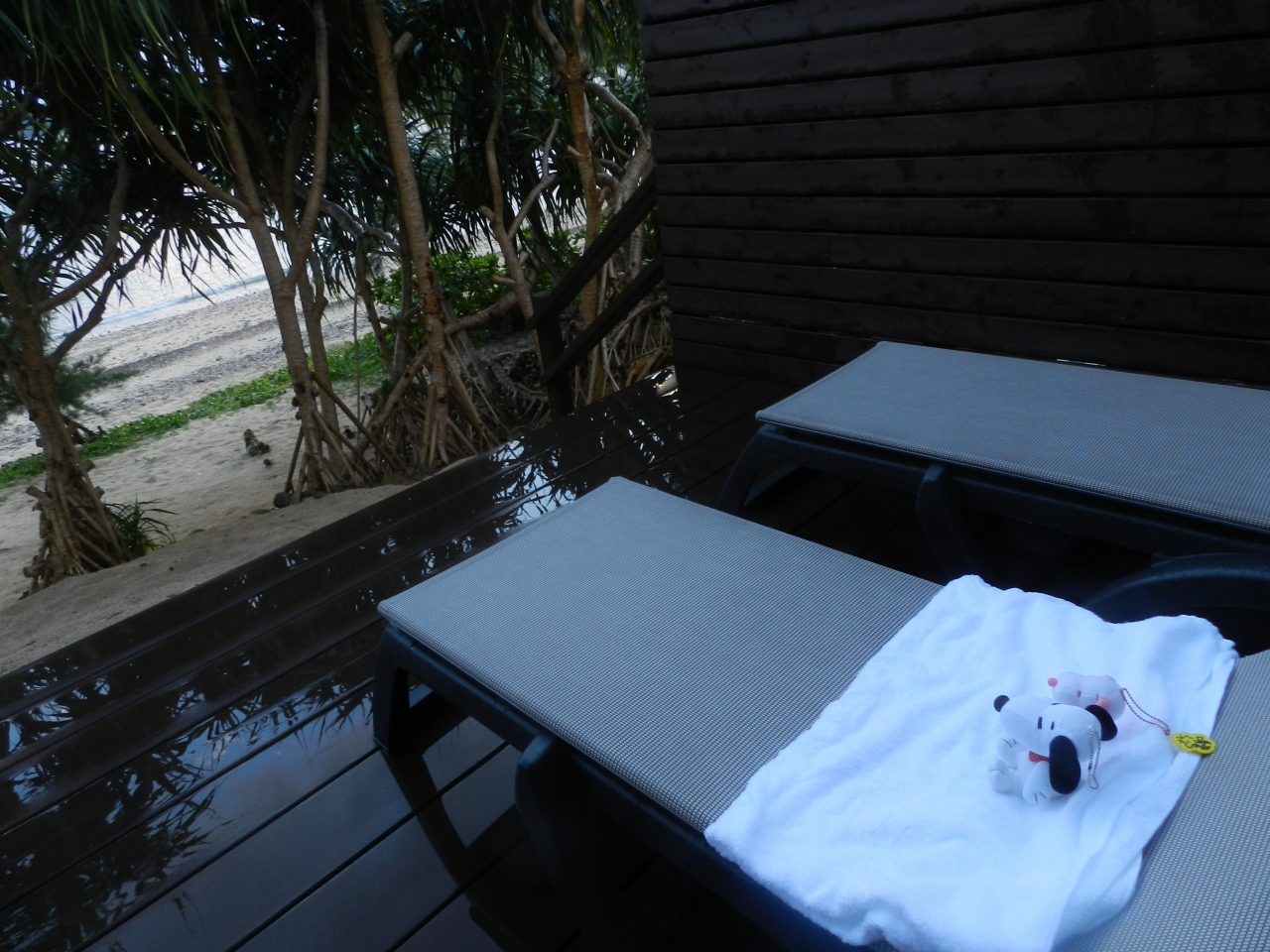 部屋のテラスにはリゾートチェアが置かれていて、その向こうはビーチ!私たちが泊まった部屋が1Fだったので、部屋から直接ビーチに出ることができました。
