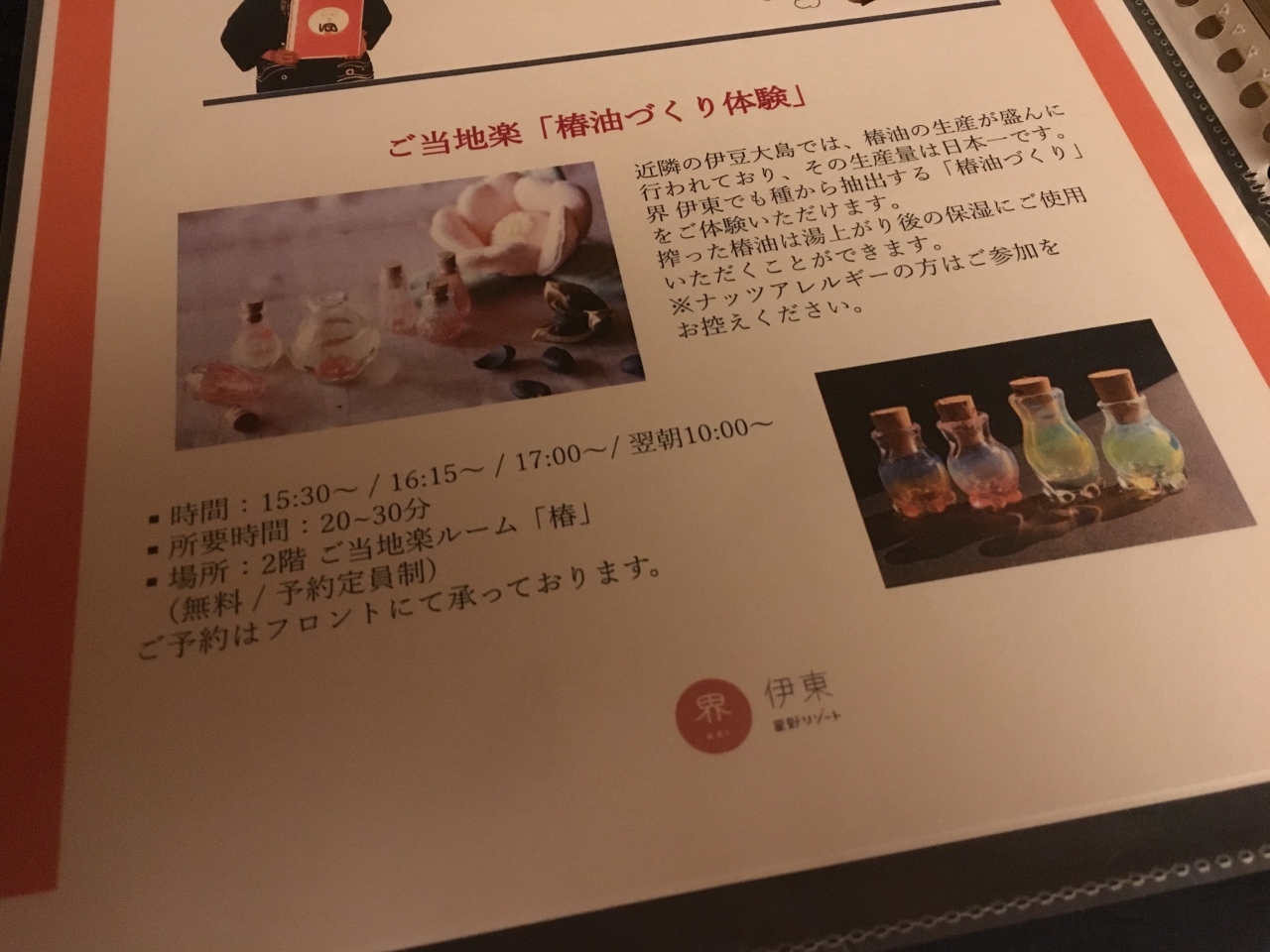 宿は地域の特産の椿をテーマとしており、食事や各所のディスプレー、宿泊客が椿オイルを搾り出すイベントまで用意している。