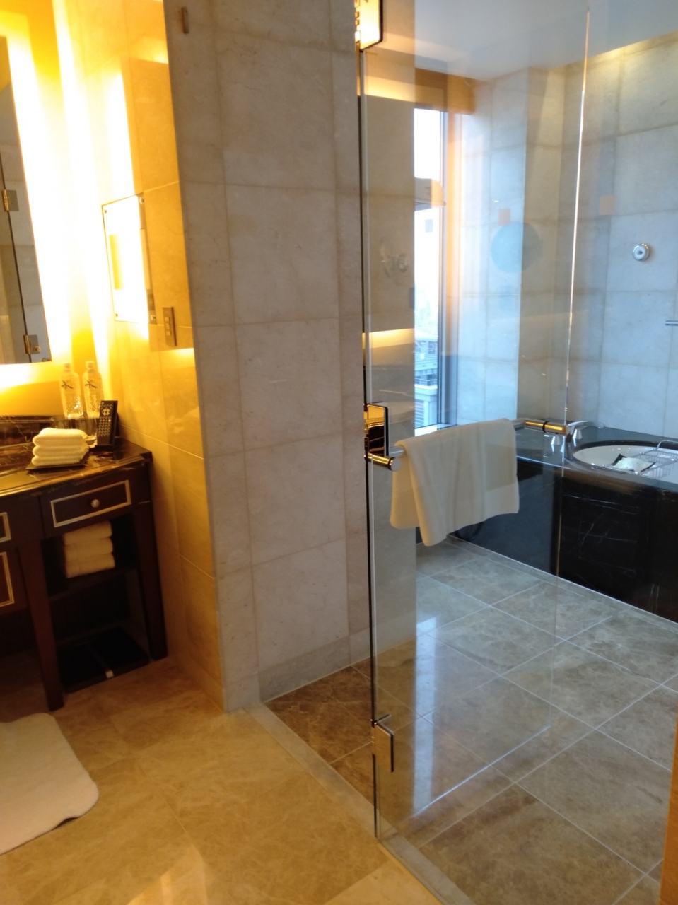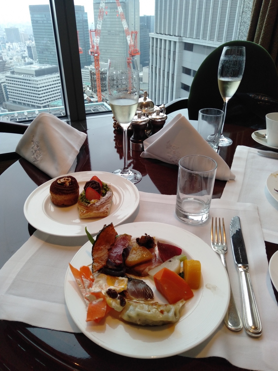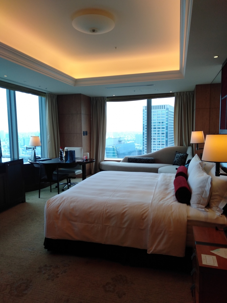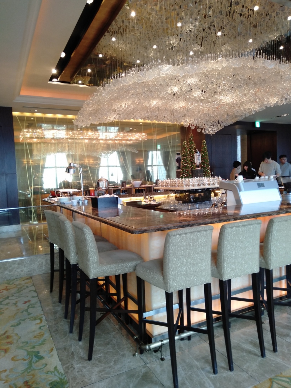 新幹線で東京駅に降り立つとホテルの方がホームで出迎えてくれ、フロントまで案内してくれました。徒歩5分という好立地で、クリスマステイストにデコレーションされた館内は微かにフレグランスの香りが漂い、きらびやかなクリスタルと相まって夢のような空間です。今回宿泊した角部屋は2面がガラス張りで広々とした開放感があり、スカイツリーが見えました。バスルームも広々としたガラス張りでアメニティはロクシタン。朝食はフロント前の開放感あるラウンジにてビュッフェスタイル。品数は多くないですが手が込んでいて野菜もたっぷり取れて美味しかったです。