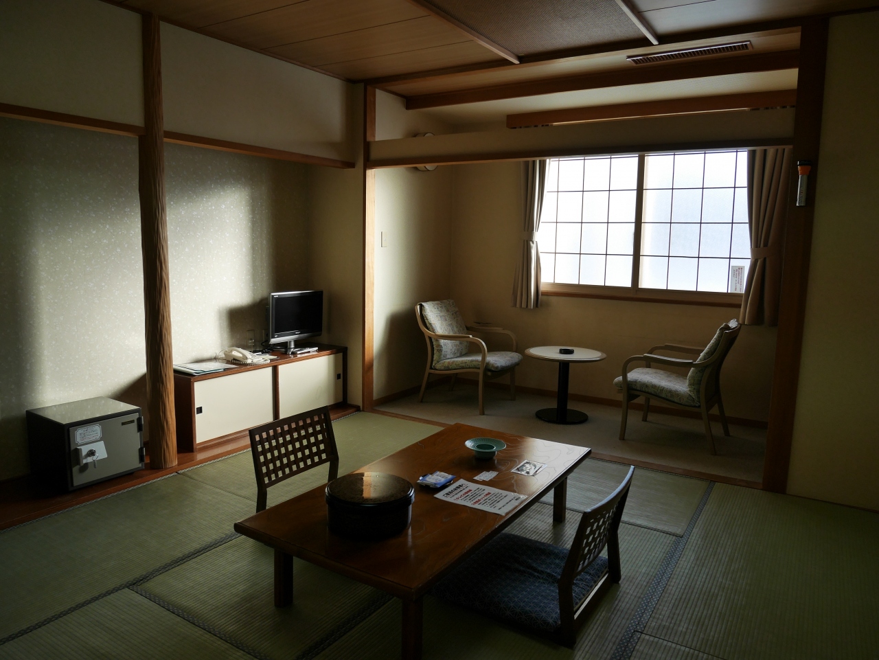 お部屋は2階の約10畳の和室です。窓側のテーブルの置かれた広縁部分も畳が敷かれ、より広く感じました。窓からは山々や端には遠く芦ノ湖も見えました。大浴場は男女別に... もっと見る