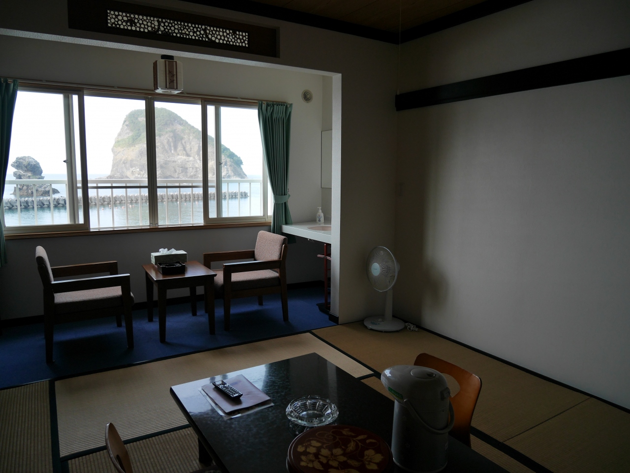 - 部屋にもよりますが、海が臨めます。8畳間は広縁などもないので意外と狭いです。