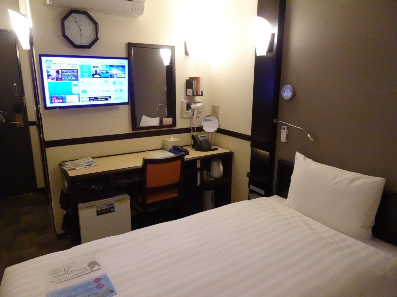 館内や部屋の清潔さは問題なし。広さも一晩寝るだけならば不自由しない。阪神高速道路と地下鉄御堂筋線が建物の真横にありますが10階の客室では特に音が気になるようなことはありませんでした。