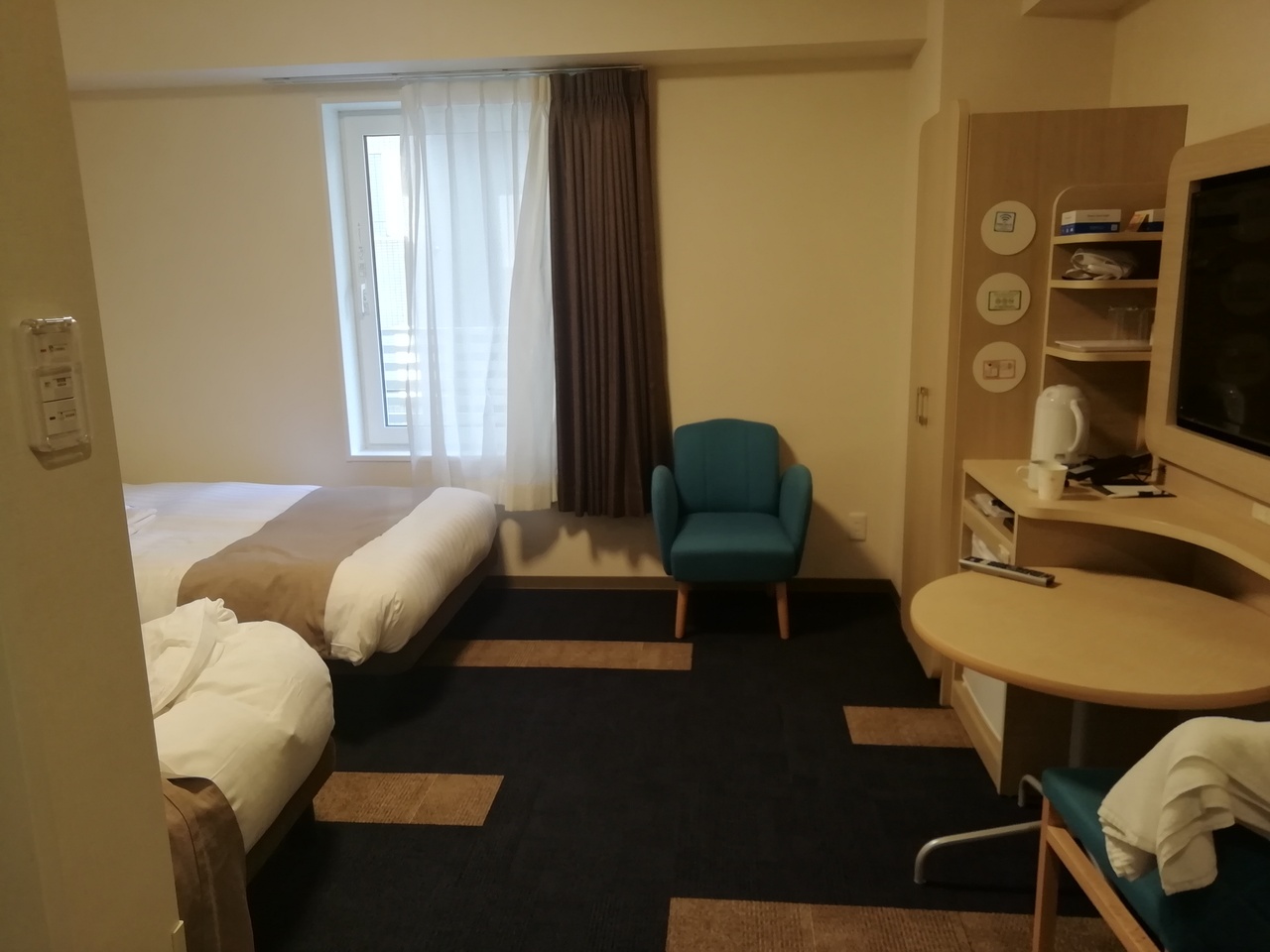 出来てまだ新しいホテルということで気になり宿泊しました。チェックインすると、広い部屋を御用意しています。と案内され広々と使えました。バスタブが広かったのが疲れがとれました。朝食は学生食堂のような感じのつくりの空間で、思っていたよりバイキングの品数は少なかったです。ビジネスホテルよりランク上の綺麗なホテルでした。