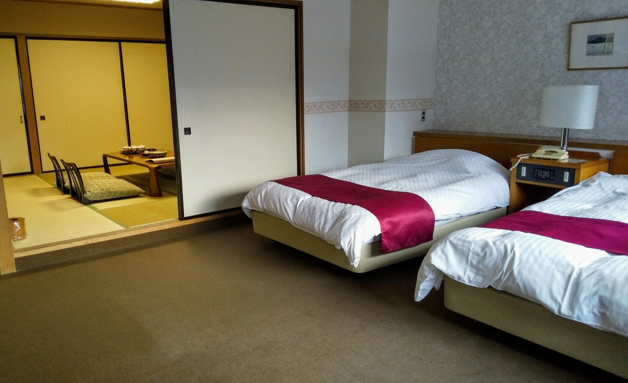 タワー館のコーナーデラックスは ベッドが2つの洋室と広い和室があり、とてもゆったりとしたお部屋でした。