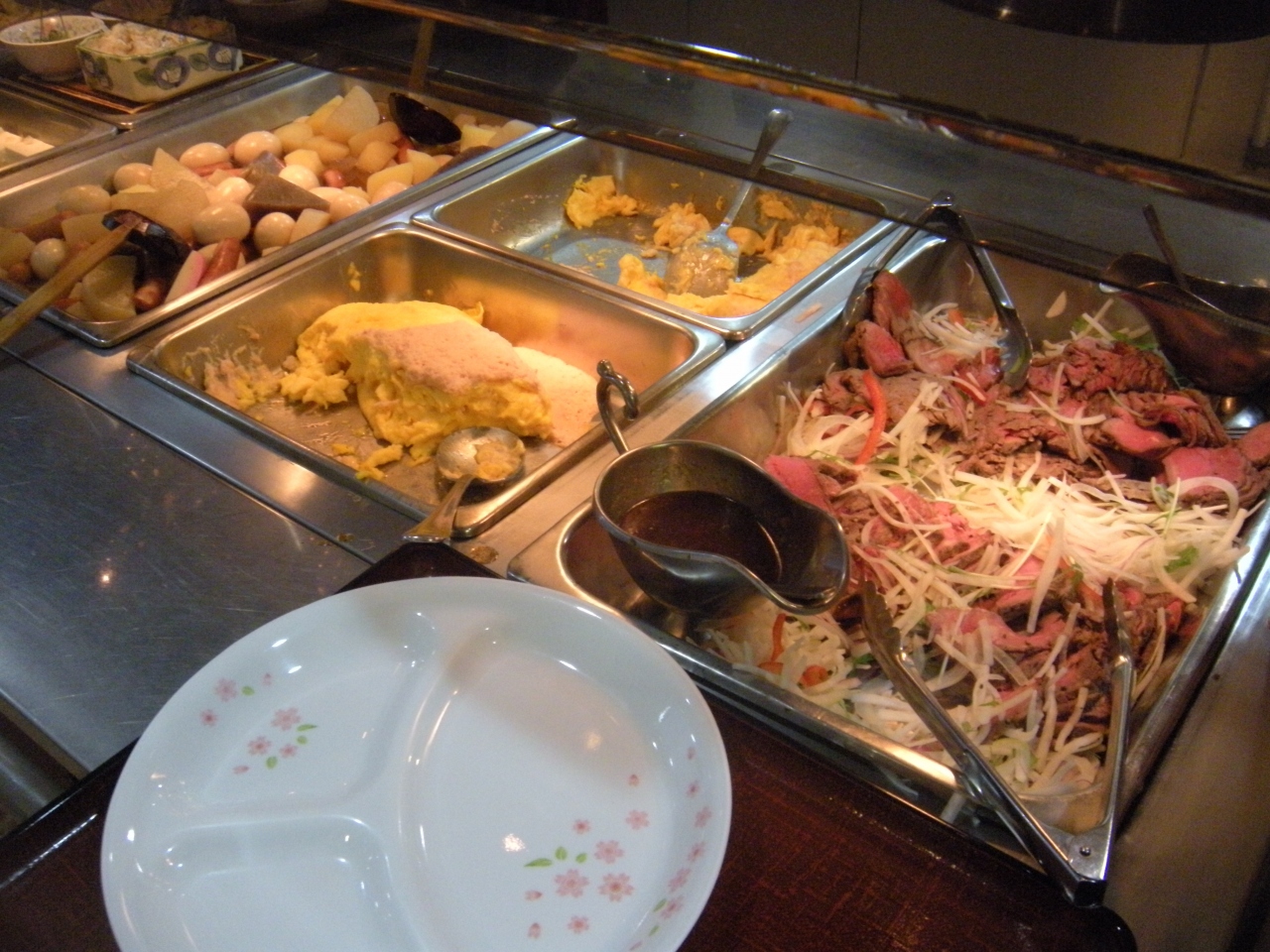 また、朝食バイキングも別途でも600円(当日800円)でローストビーフが付く豪華ぷりでした。
