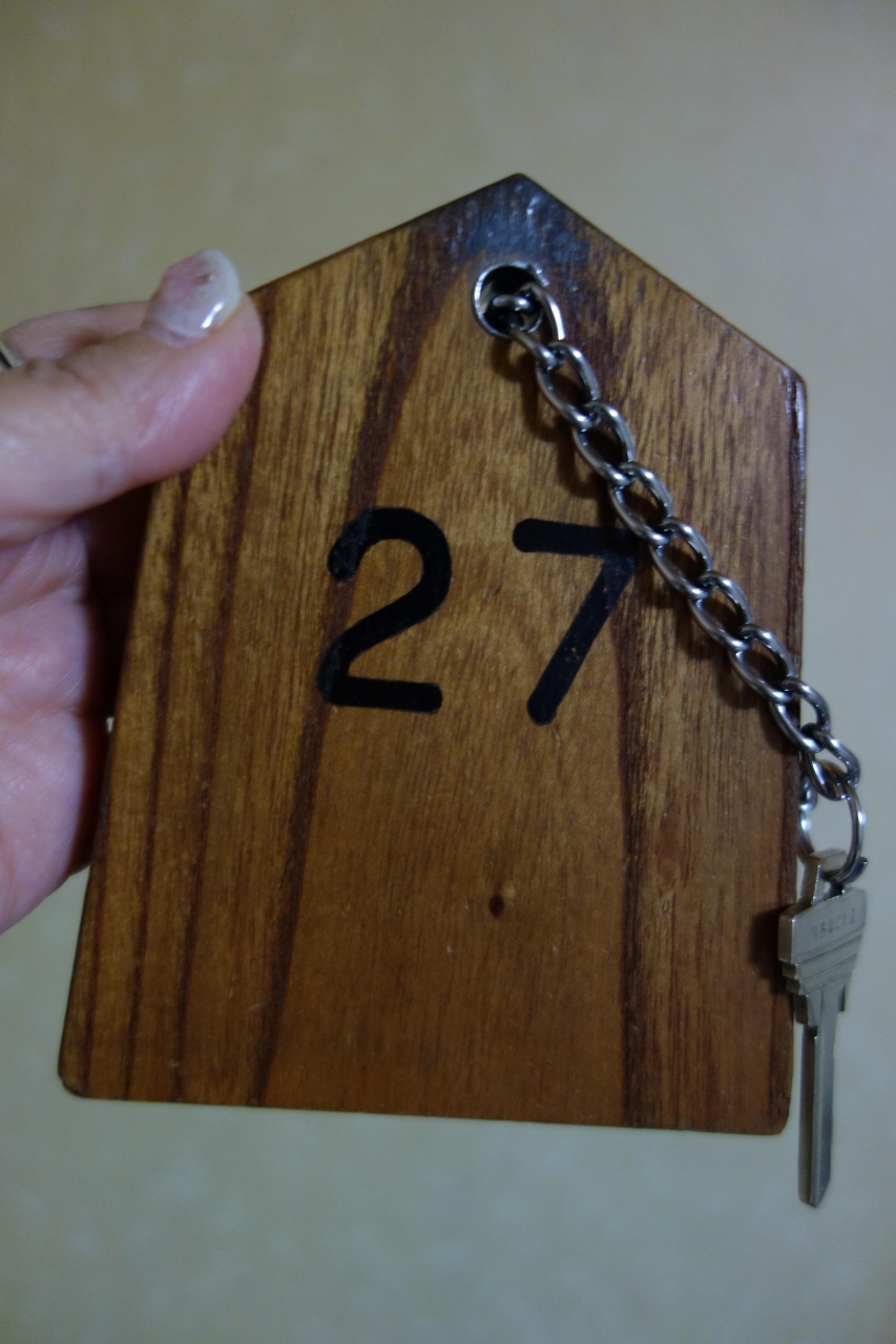 巨大な将棋の駒の付いたキーをもらって、案内された部屋のドアを開けると、其処は旅館スタイルで靴を脱ぐ場が在り、上がって右側にトイレ、洗面台ユニット、洗い場の在るお風呂でした。このお風呂が温泉が出るんです。ただ、トイレの便座が温かくなかったのは残念。