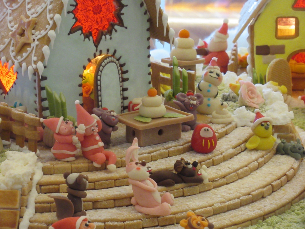期待していたカフェ前のお菓子の家やロビーの飾りは、、、でしたが、プール横のライトアップは綺麗でした。