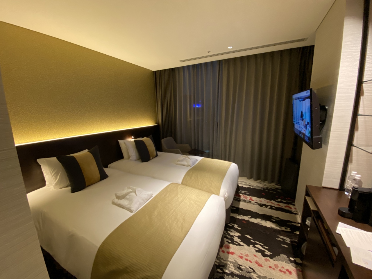 建物やロビーのパッと見の雰囲気はラグジュアリーホテル然としつつ部屋は普通にビジホ的なコンパクトさでお値段控えめな最近流行りっぽいホテル。