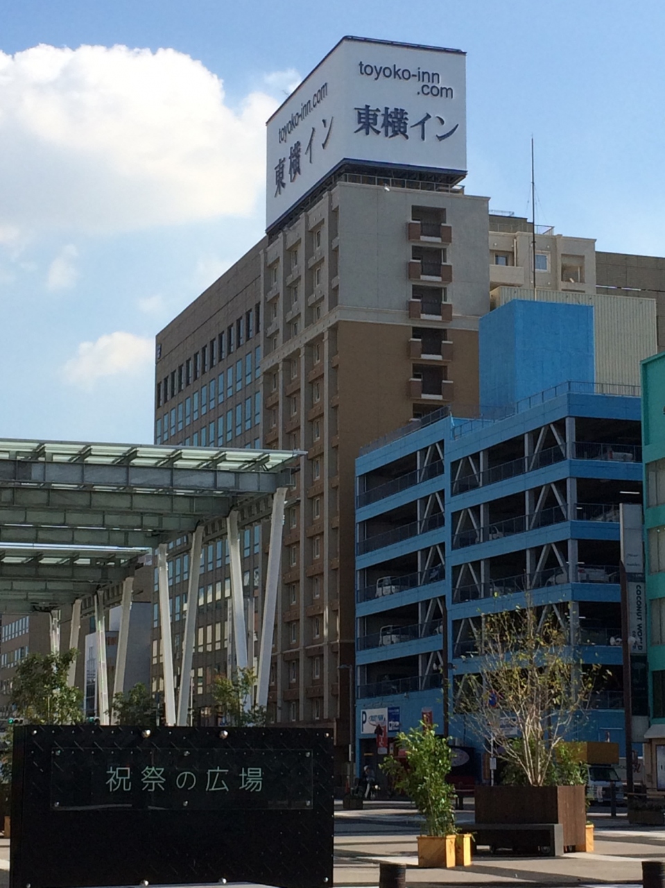 大分市にある東横インですが、駅前店ともう一軒あります。駅前とは言うけれども、1本道を挟んで少し歩くところにありました。市民に憩いの広場も近くにあり、一番目立つ高い建物なので、アクセスは良いと思います。室内は、他の東横と一緒です。