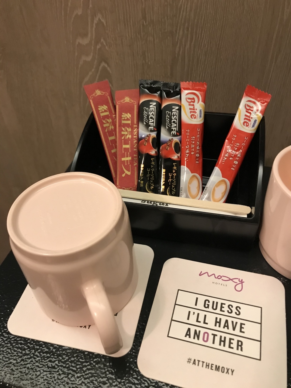 半年ちょっと期間が空いての利用でしたが、以前に比べて改善が目につきました。電気ポットは全ての部屋に置かれているようでティーセットは設置されていたのは嬉しい改善です。欲を言えばカップがメラミン製でとても安っぽく、ティーセットもコーヒーと紅茶(紅茶はティーバッグではなく、紅茶エキスなる飲み物)だけなので緑茶やほうじ茶などのティーバッグがあるとさらに嬉しく思いました。パジャマは東京のモクシーのようにチェックインカウンター横に置かれていました。以前は電気ポットもリクエストの貸し出し制、パジャマも数に限りがあったのか「ありません」と言われたこともあったり、部屋に冷蔵庫すらありませんでしたので、それを思うと素晴らしく改善されたと思います(冷蔵庫の上にはセーフティーボックスも置かれていました)。スタッフのゆるさはホテルの特徴と思って楽しんでいます。まだまだ期待しています。