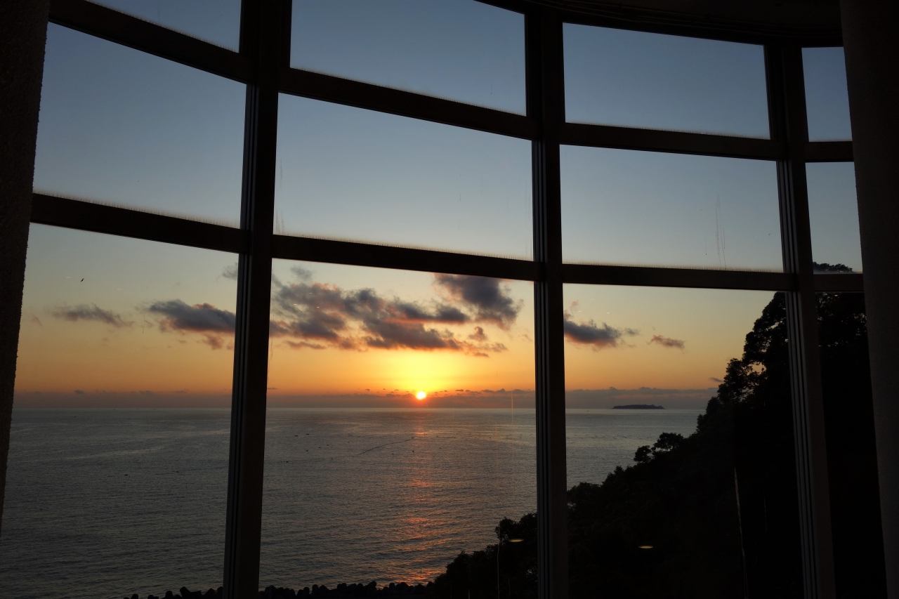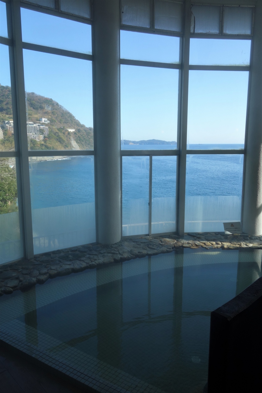 大浴場は広かったですが、斜面を利用しているために浴槽が並んでおらず、その空間が寒々しく感じました。ただ朝日が昇って来るのが見られます。