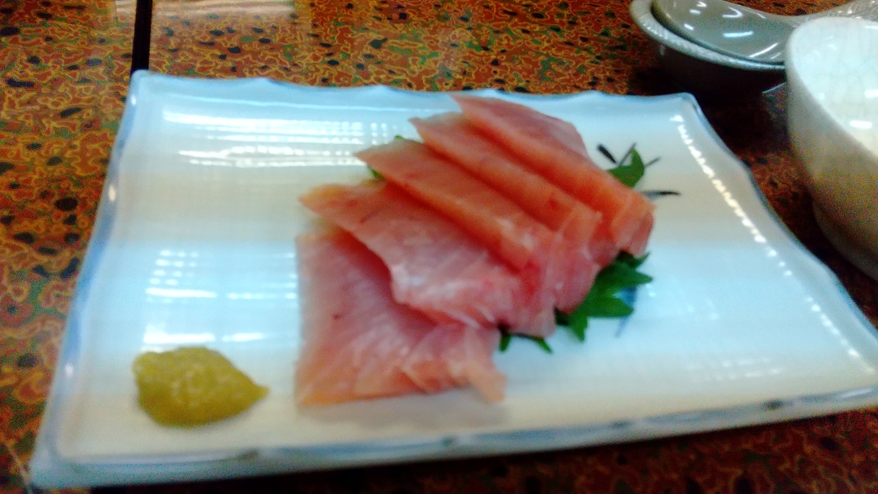 島の食事処では島の食べ物がないですねなんて言う話をしていたら、夕食に島寿司作ってくれました。