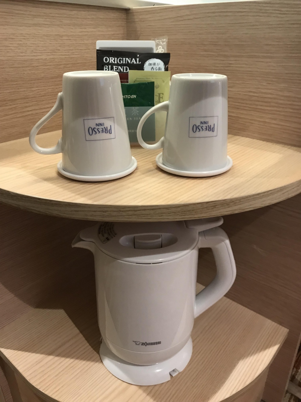 インスタントコーヒー、お茶はあります。水はありませんので、買ってきました。