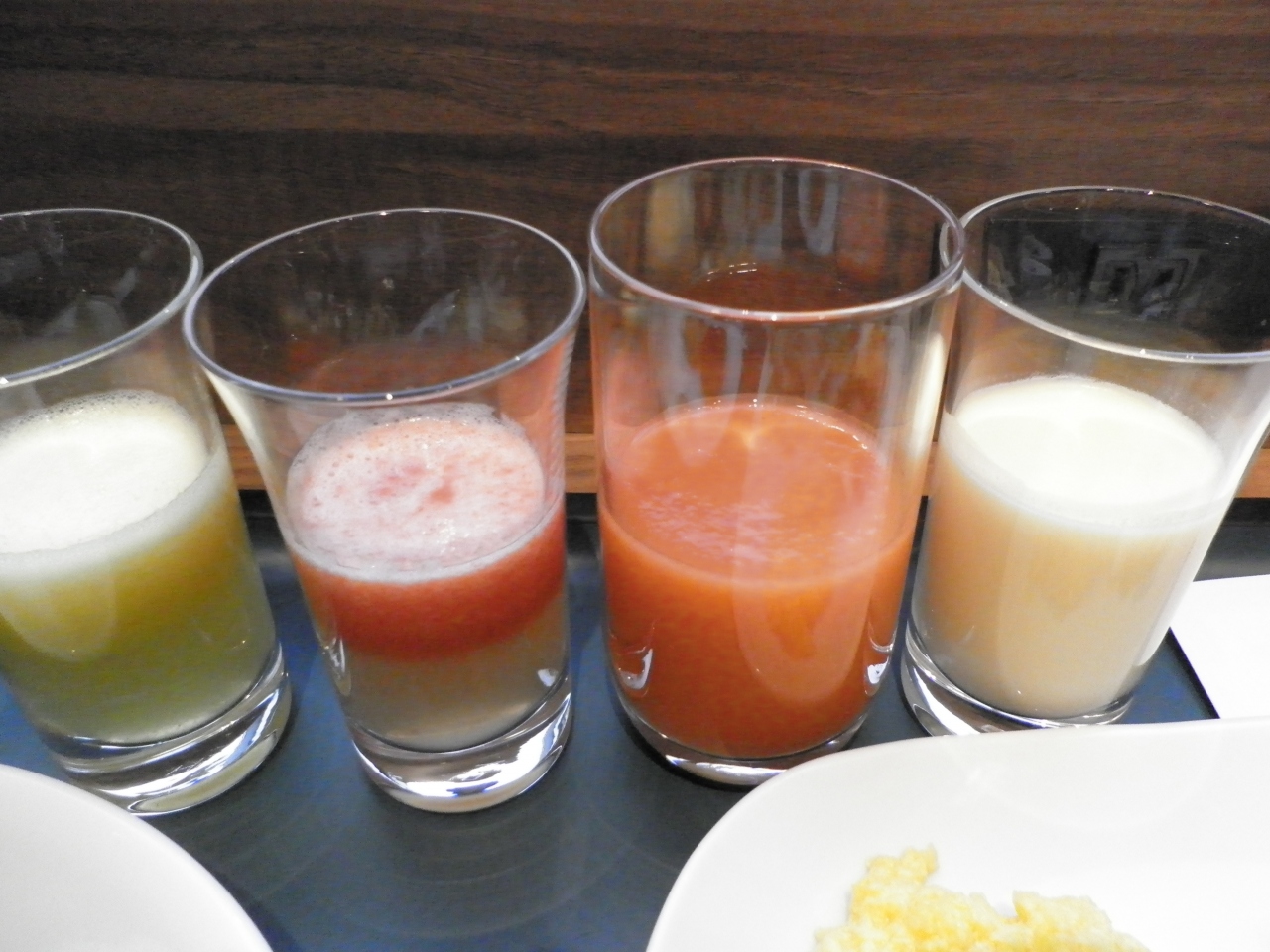 朝食は生ジュース、スムージーがおいしく、手作りのおかずも並んでいて満足できました。