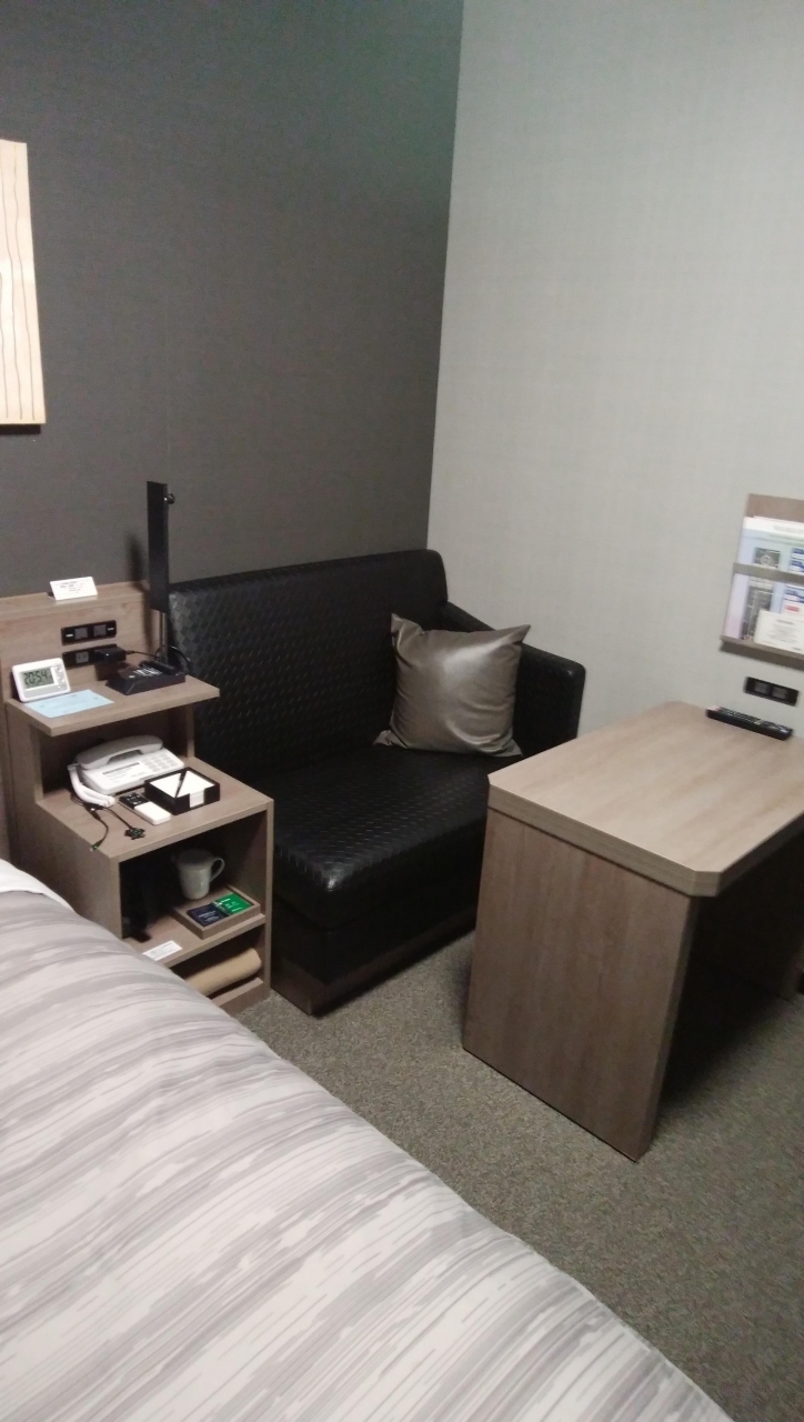 ホテルは新しく、客室の設備は充実。一人用のソファとビジネスでも使えるデスクが良いです。