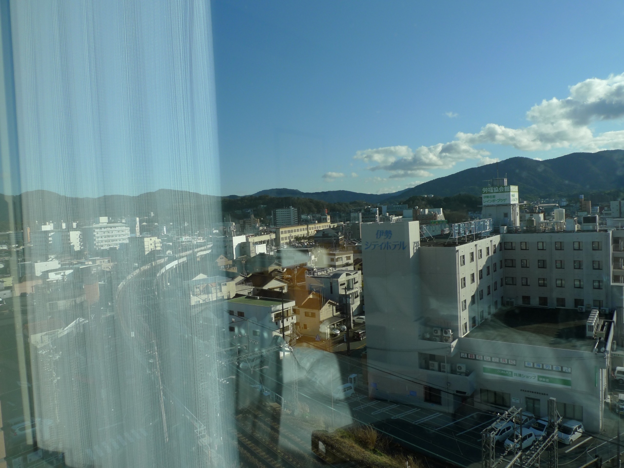 813号室は角部屋だが、残念ながら窓は一方向だけ。JRの線路が見えるのでシティビューのようだ。