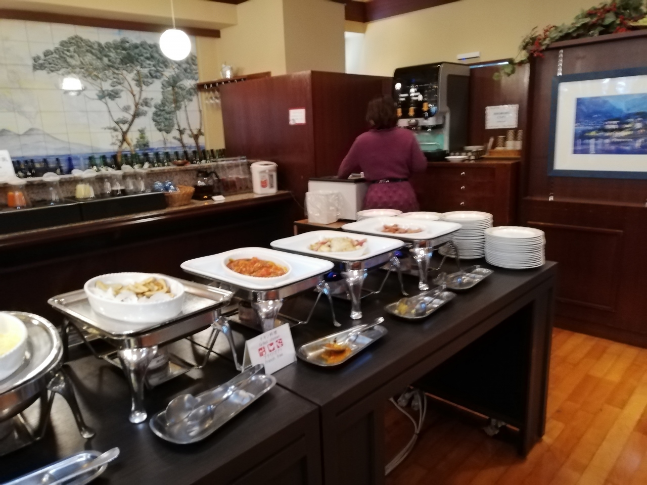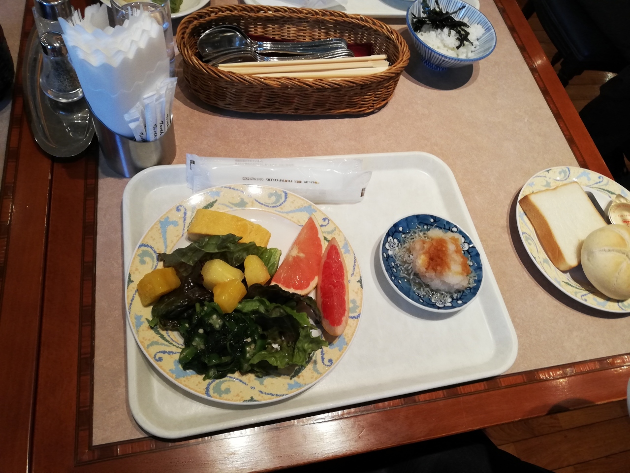 ここの朝食は結構いけるとの口コミがあり、少々期待している。豪華ではないが、ちゃんと坪を押さえている。