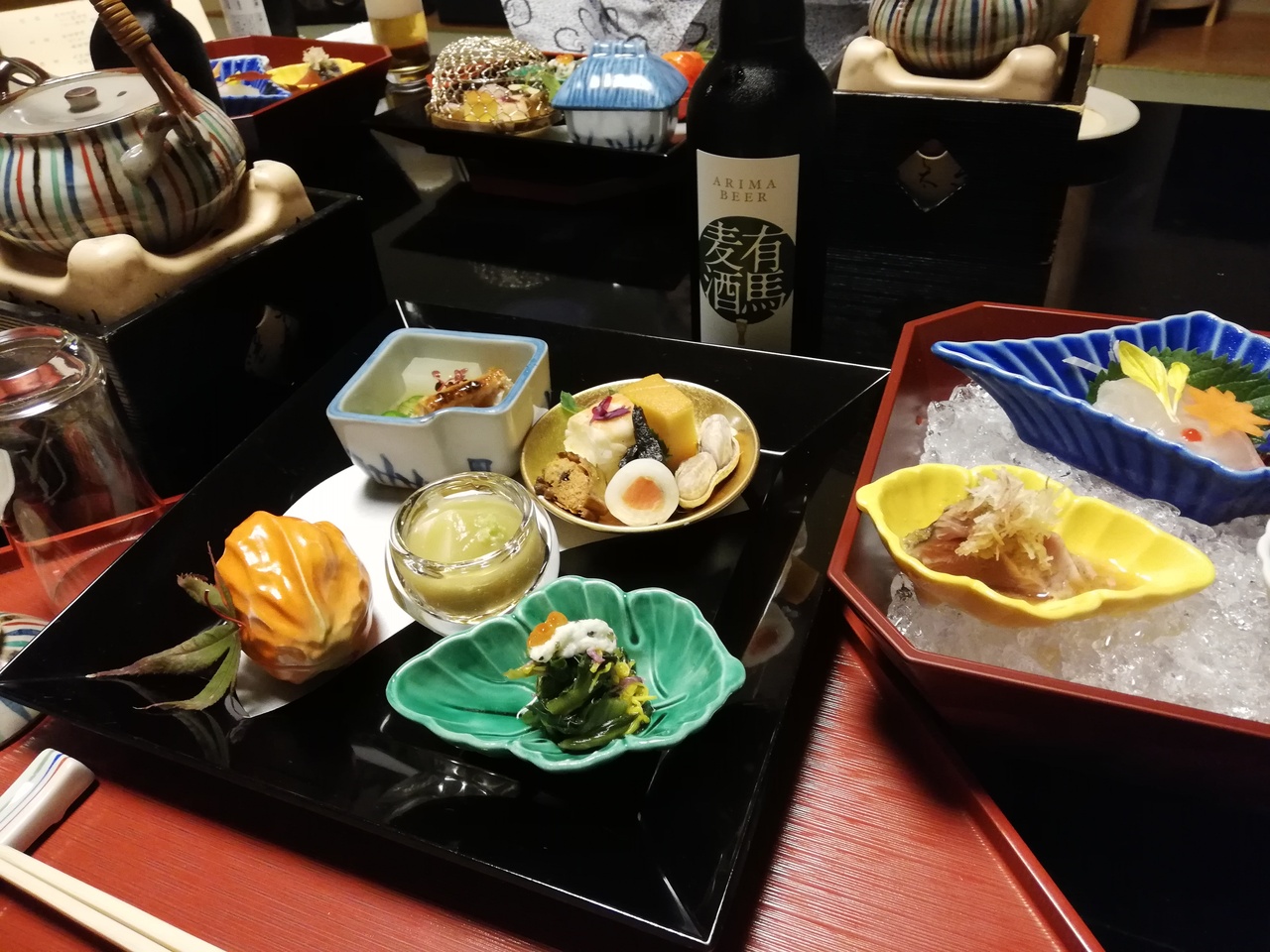 何度か訪れた有馬温泉で この古泉閣は 初めて訪れる。 まず圧倒されるのは 古泉閣の堂々たる門構えではないだろうか? 御殿のようなゴージャスな造りも 期待がふくらむ。 まずロビーに入り カウンターで入館の受付をするのだが その前に 広々とした窓ガラスの向こうに見える 大展望に魅入ってしまった。温泉は有馬特有の金銀の湯、やや金の湯がこじんまりとして、もっと広々としていればと残念。そのかわし料理は質内容ともレベルは高い。