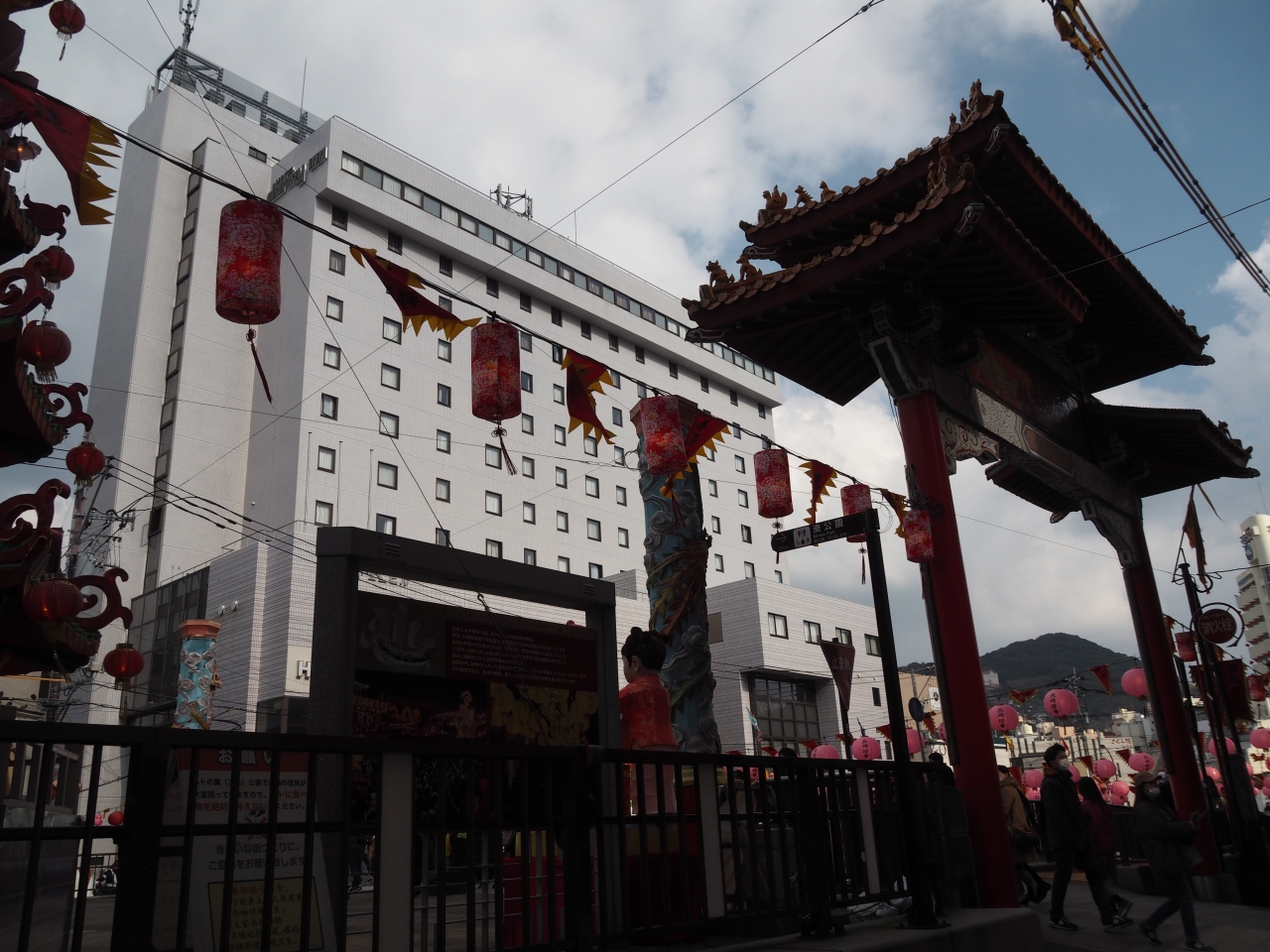空港からは空港バスで”長崎新地バスターミナル”から歩いて5分弱。そして目の前が中華街。浜んまち商店街のアーケードも近いし、グラバー園やオランダ坂、出島など長崎市のベタな観光地には歩いて行ける場所にあります。