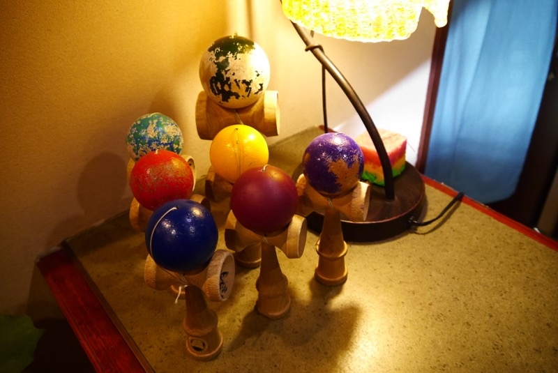 入ってすぐのフロント・ロビーでわくわくできることって、ホテルを構成する要素のなかでも大事なことだなと思っています。ここは入ってすぐのフロントデスクに置かれたカラフルなけん玉や、そのすこし奥に鎮座している巨大なけん玉、そして往年のミュージシャンの音楽を昔は流していたのであろうジュークボックスっぽいもの(…でなかったらすみません)があったりと、ロビーからわくわくできる要素が詰まっていました。