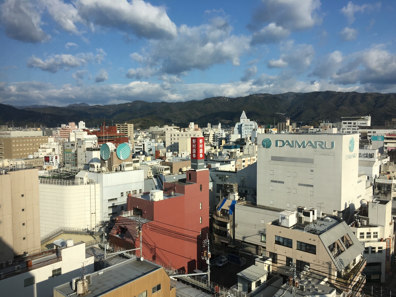 繁華街にも近いですが、高知城までは徒歩で、10分以上かかりますので、ホテルの自転車を利用されると便利です。