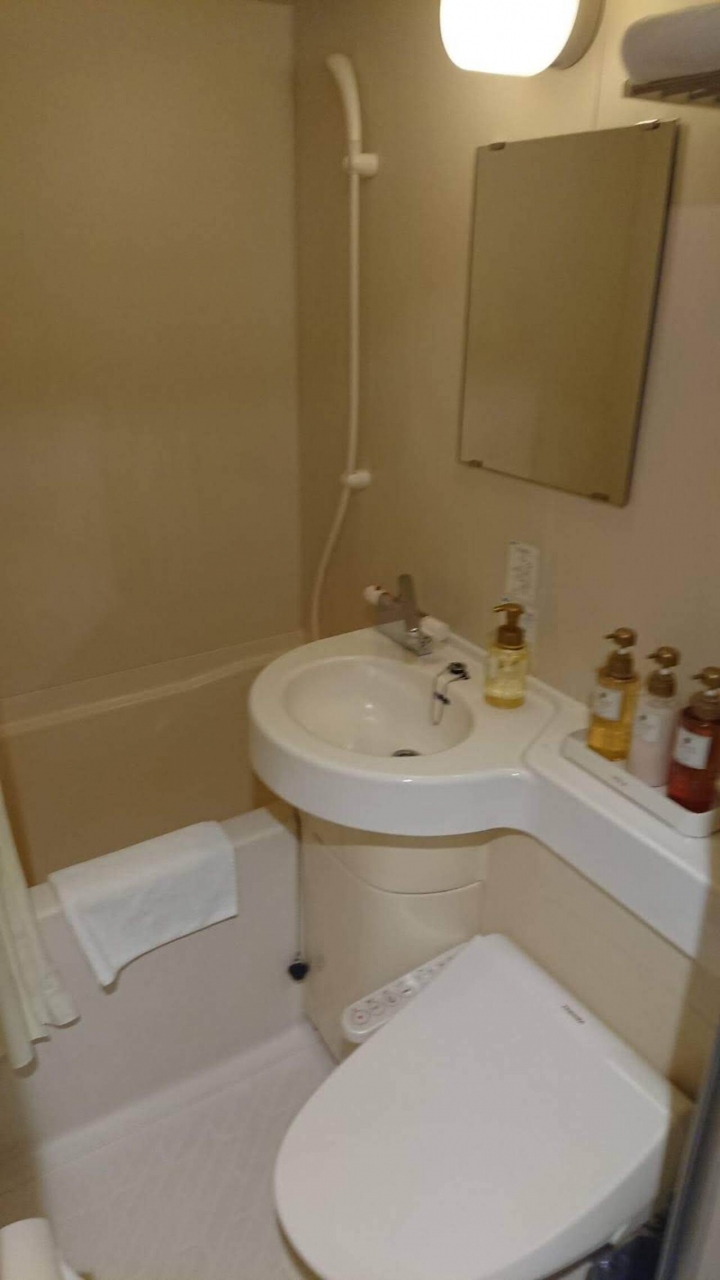部屋は狭かったですが、一泊で、しかも夜遅くまで観光していたので、ほぼ寝るだけでしたし、全く問題ありませんでした。ベッドの他に壁付けの机があり、テレビ台でもあります。ここで朝食を食べたり、朝の身支度をするのに便利でした。鏡もあります。