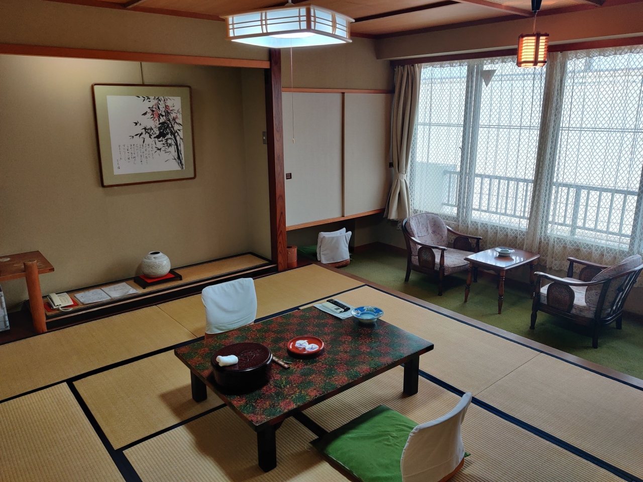 客室は広縁付きの和室十畳。喫煙可の部屋だったが煙草の匂いは気にならなかった。